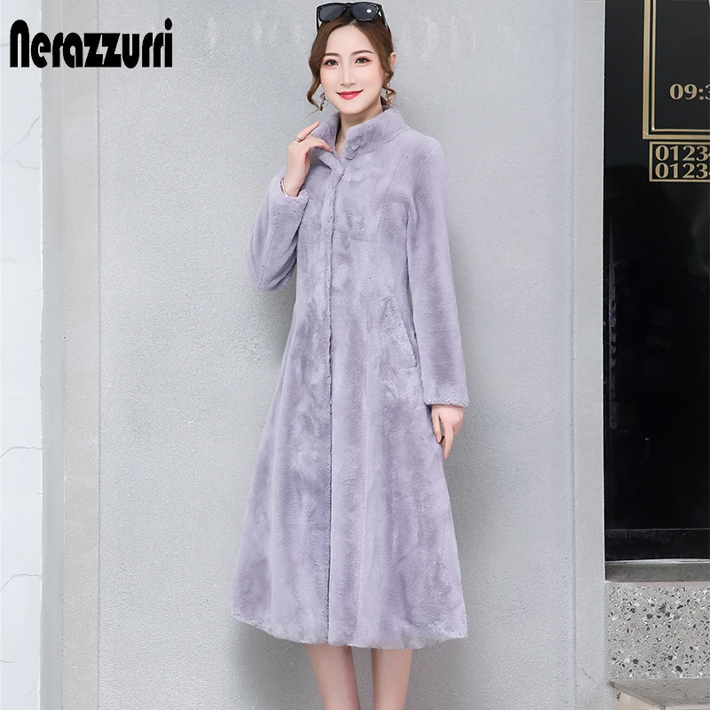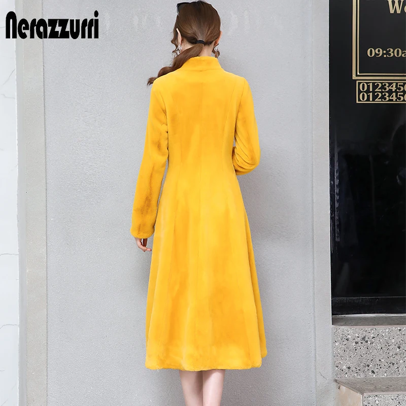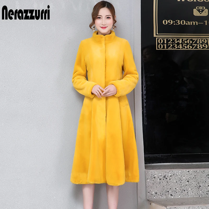 Nerazzurri серого пальто из искусственного меха с длинным рукавом,желтая искусственное пальто из меха кролика, зимнее пушистое пальто женская шуба из искуственного меха длинная плюшевая шуба