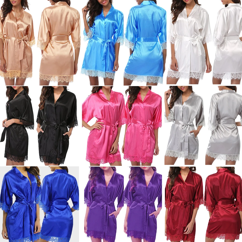 Женский Шелковый Атласный халат, платье для невесты и подружки невесты, свадебное кимоно, халат, одежда для сна, свободное платье на шнуровке, ночная рубашка, домашнее платье