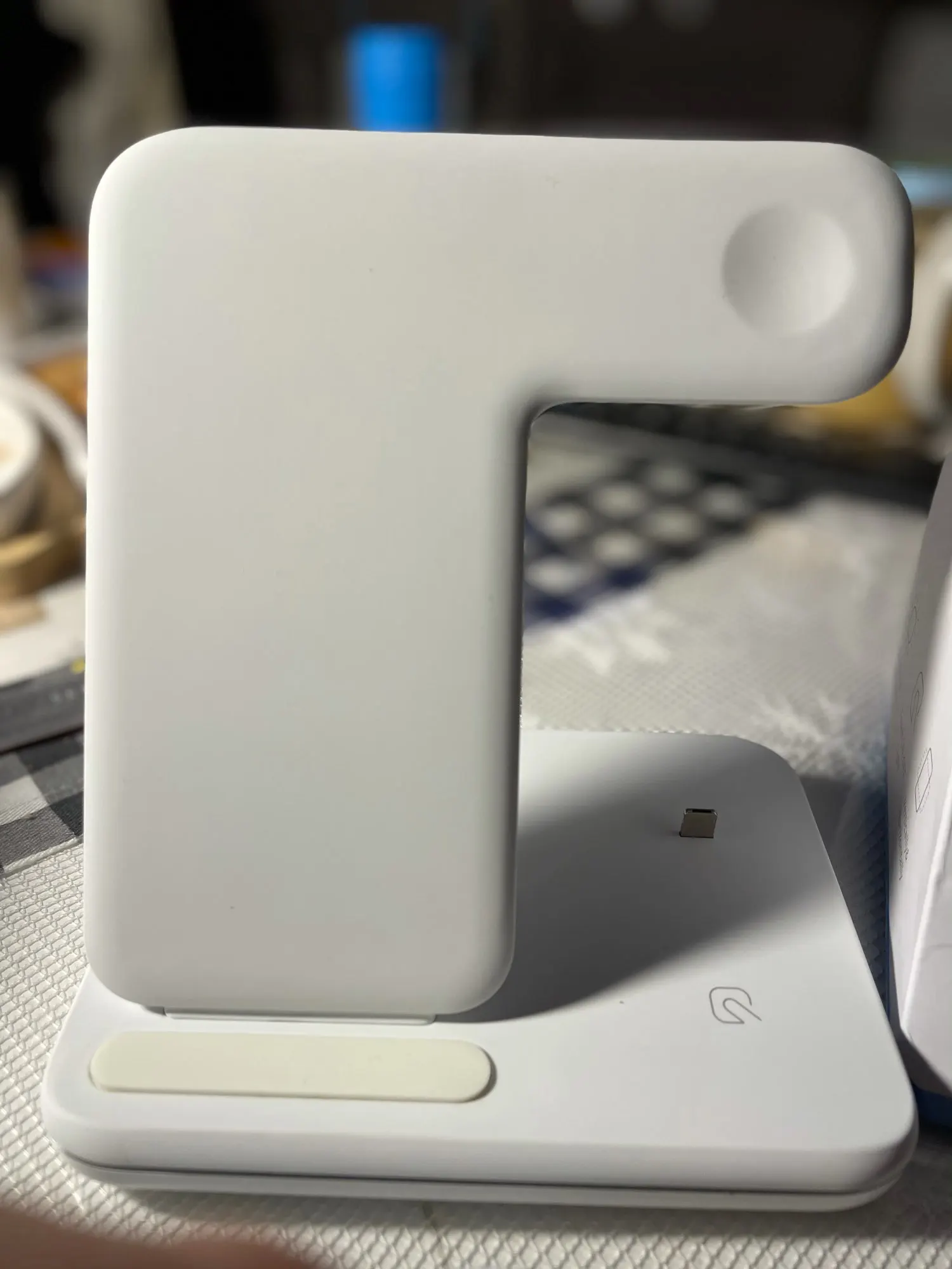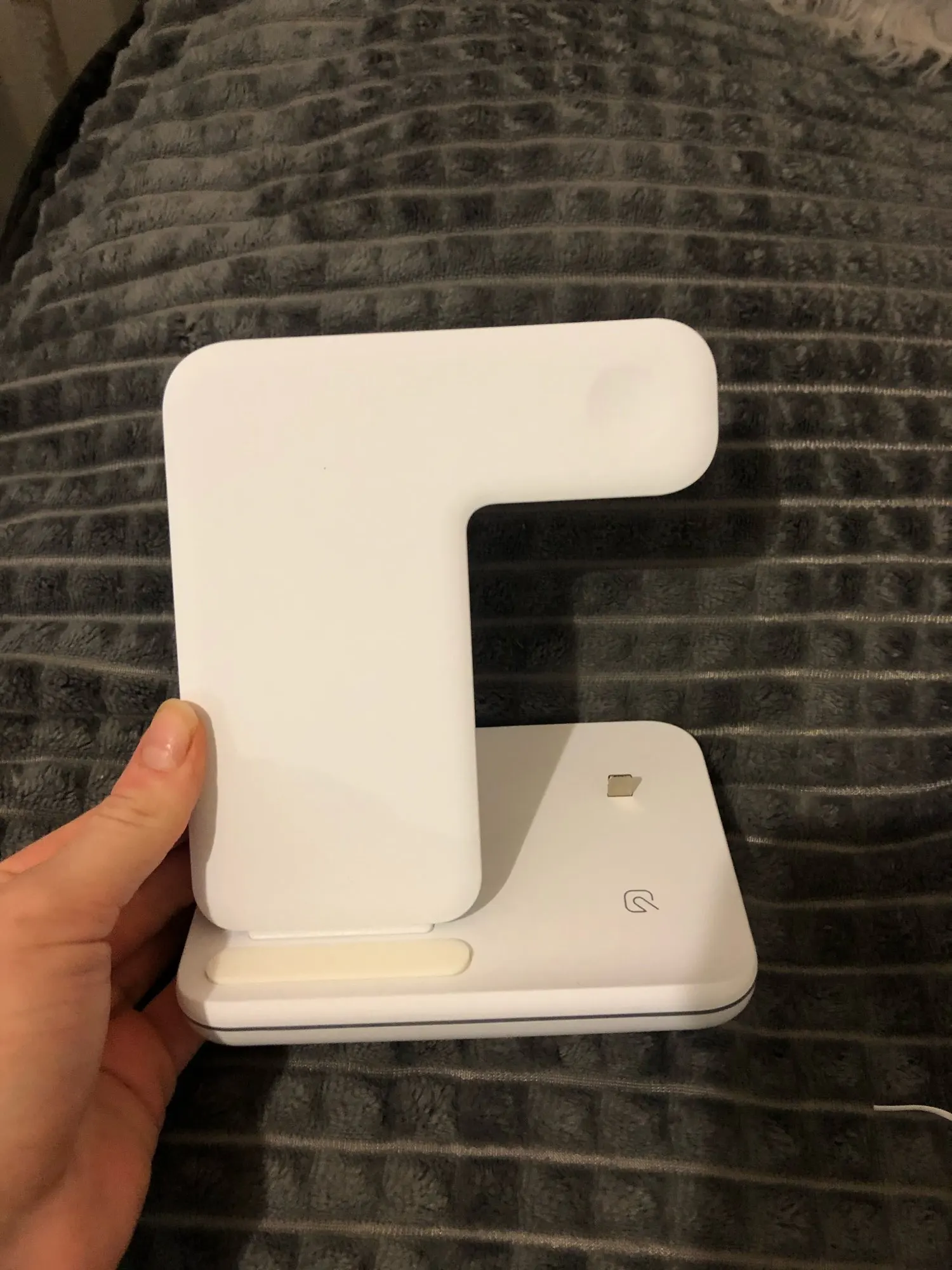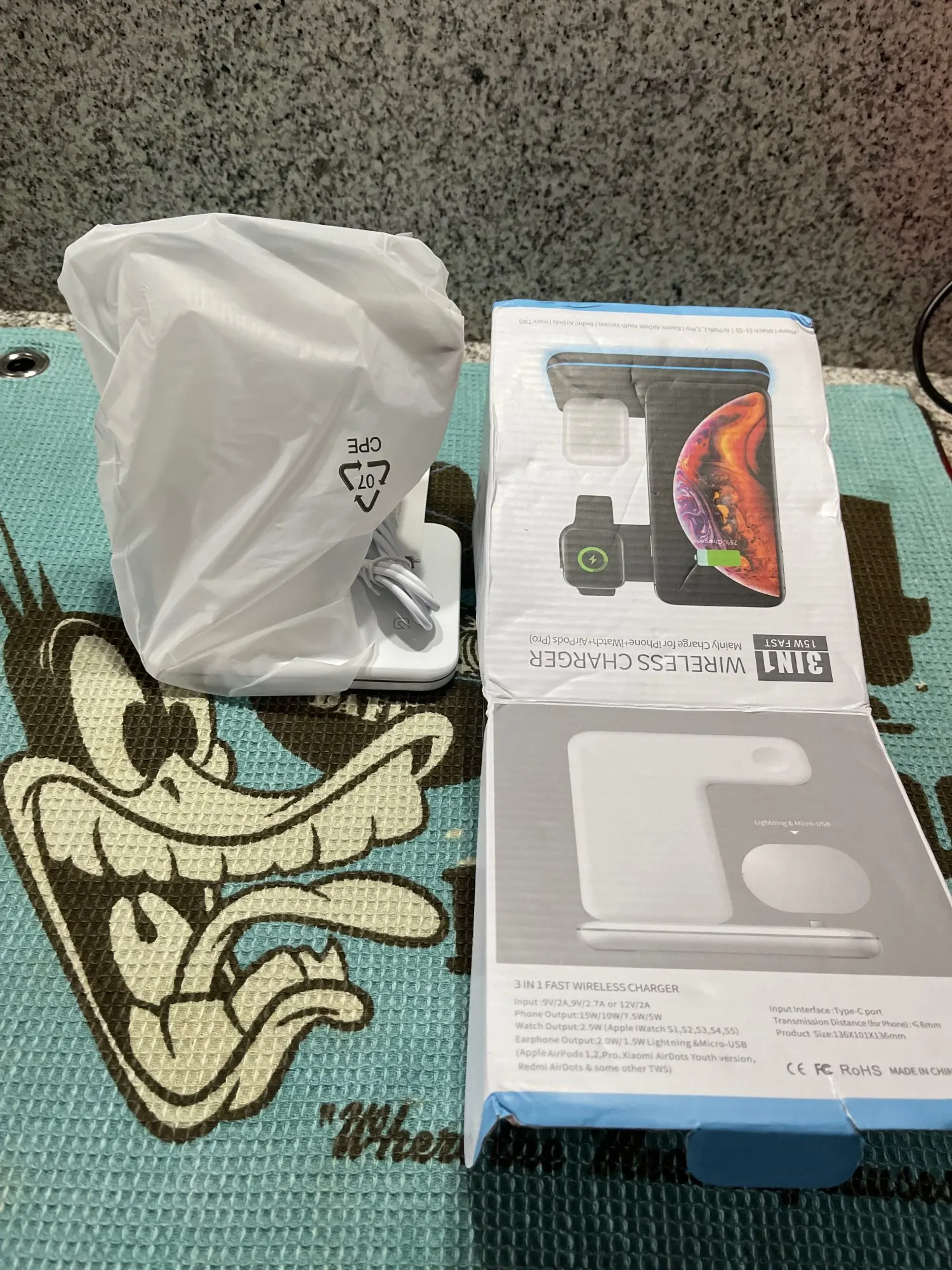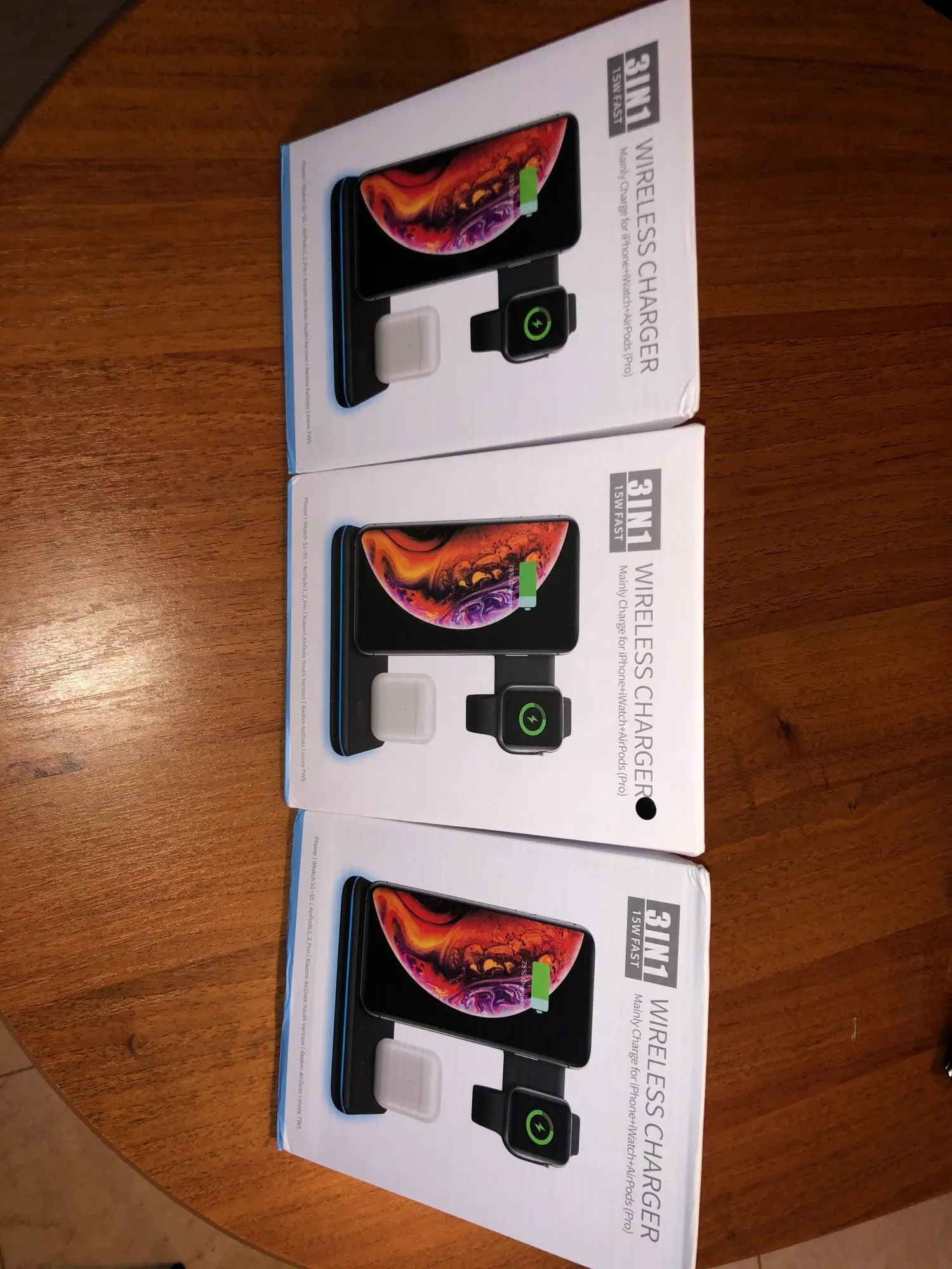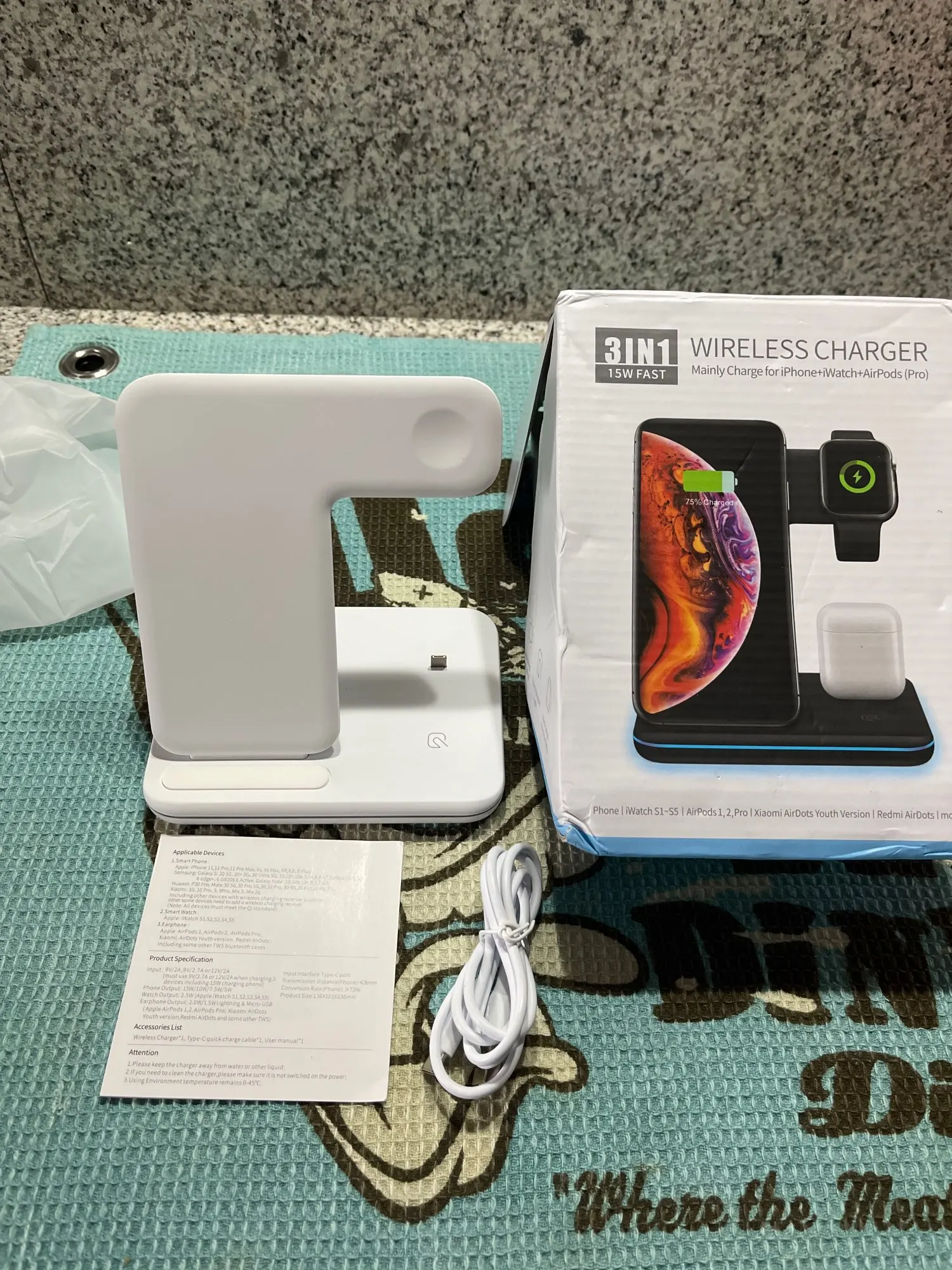 Пришла зарядка в Новосибирск за месяц. Выглядит очень красиво, никаких повреждений, коробка тоже целая. Мне показалось, что все три устройства не зарядишь вместе, только по 2. Но меня это не особо смущает. Заряжает по скорости как оригинальная зарядка, но самое главное — никаких миллионов проводов! Спасибо!