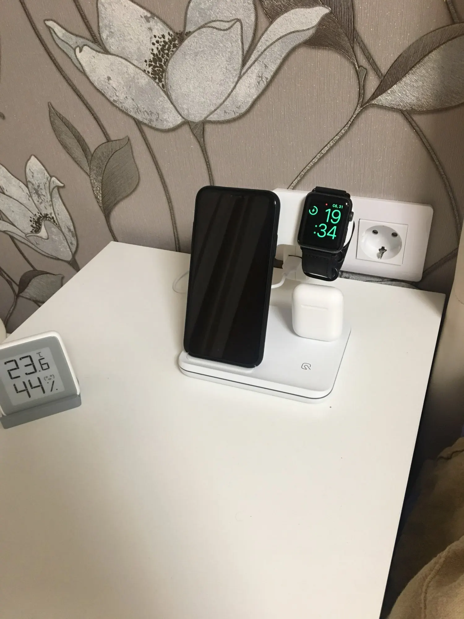 Все работает! Качество изделия норм, софи тач повсюду. Заряжает все устройства, в т.ч. и одновременно. Иногда подсветка начинает жить своей жизнью, приходится отключать сызнова. Имейтесь ввиду, что зарядка эта отнюдь не быстрая, особенно это заметно на телефоне, а если ютубчик будет работать, да еще и часы висеть с наушниками, то телефон еще и разряжаться будет. Подойдет для заряда по принципу «поставил и не трогаешь несколько часов». Еще из минусов, работает исключительно от розетки, при подключении к ноуту начинает постоянно сбоить. От одноамперки эппла работает стабильно, хоть в инструкции и сказано про использование мощных адаптеров, на практике разницы не оказалось.