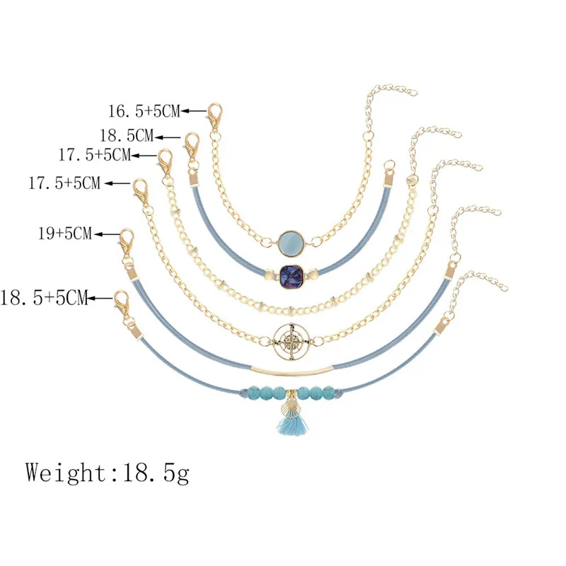 6 шт.компл. богемные синие Бусины кисточкой цепи браслет наборы для Женский компас драгоценный камень океан ветер золотая цепь подарочные браслеты и ювелирные изделия