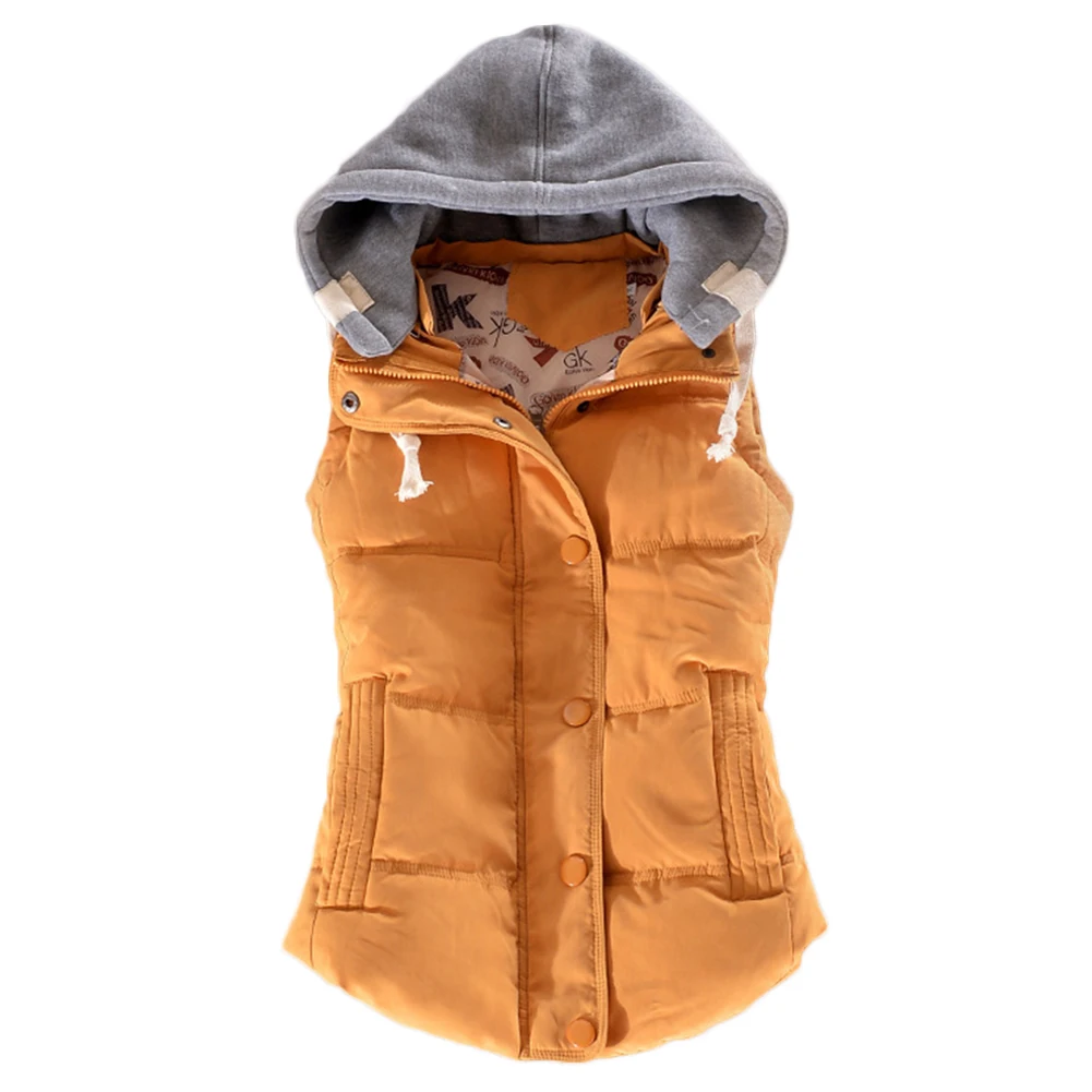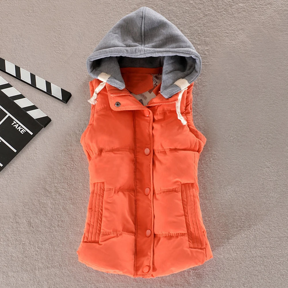 Женский зимний жилет с хлопковой подкладкой и капюшоном, жилет на молнии, безрукавка, куртка