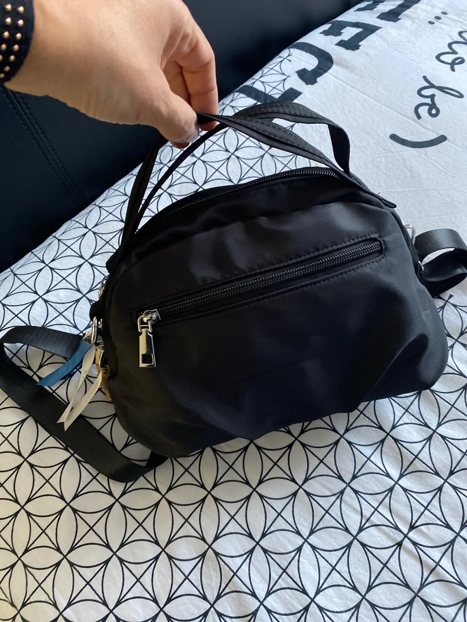 Быстрая доставка. Сумка хоть и маленькая, но вместительная. Швы ровные. Очень удобная сумка! Однозначно рекамендую. Спасибо магазину