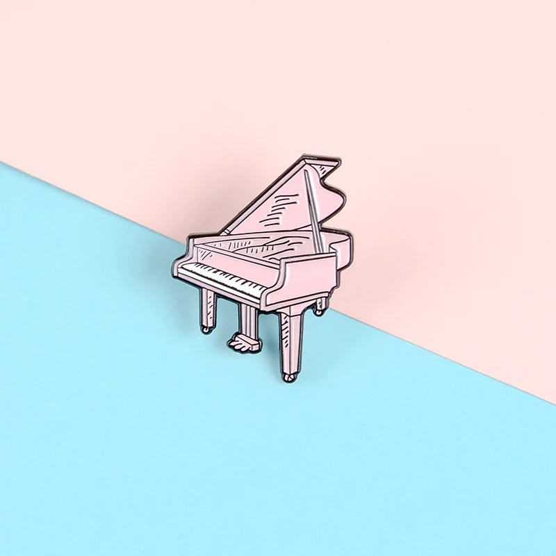 Брошь из сплава с розовым пианино, для сумки, одежды, рюкзака, эмал...