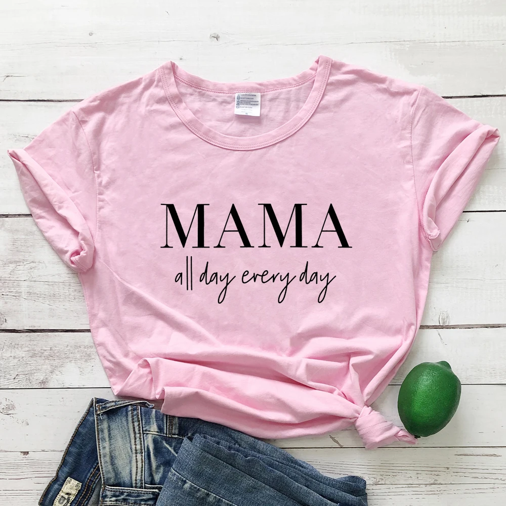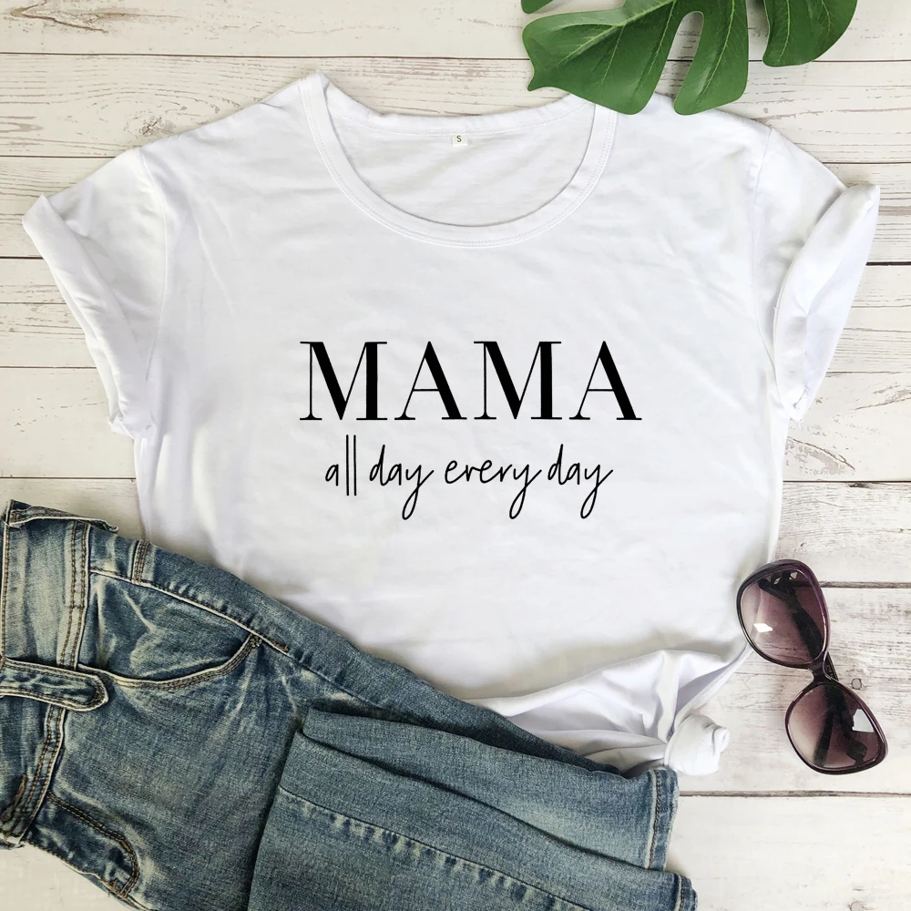 Футболка женская с надписью MAMA All Day each, повседневная тенниска из чистого хлопка в стиле Tumblr, с надписью Mom жизнь, подарок, топ размера плюс