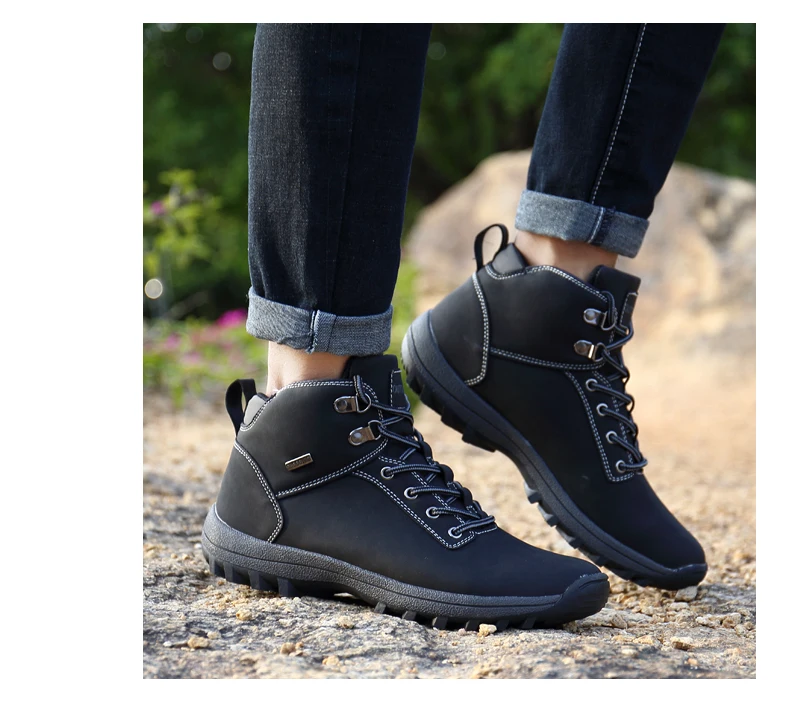 PU кожаные ботинки для пешего туризма, мужские зимние уличные кросс...