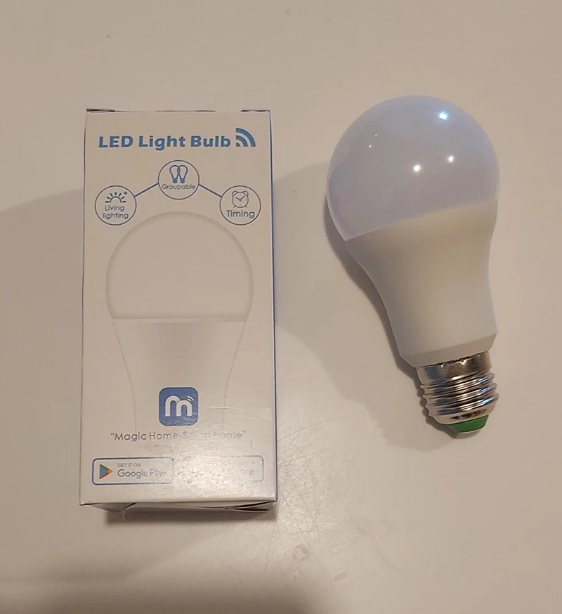 Упаковка - в хлам, но лампочка целая. Оказалось у неё своё (ранее мне не знакомое) приложение - Magic Home-Smart Home. Мда... думал Smart Life её увидит или eWelink, чтобы не плодить это всё и без проблем к Алисе подключить, но... её не видит ничего из этого, а Алиса (февраль 2021) не знает эту программу) Крч управляется только своим приложением (вероятно) и баста... оно того не стоило (374 рубля)