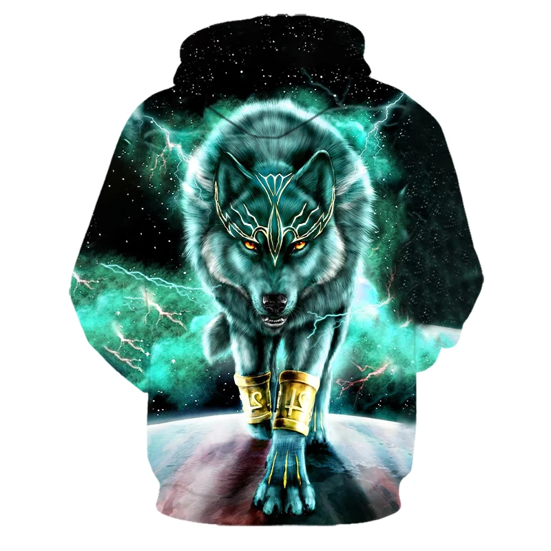 Толстовка с 3d-рисунком волка, мужская толстовка с капюшоном с прин...