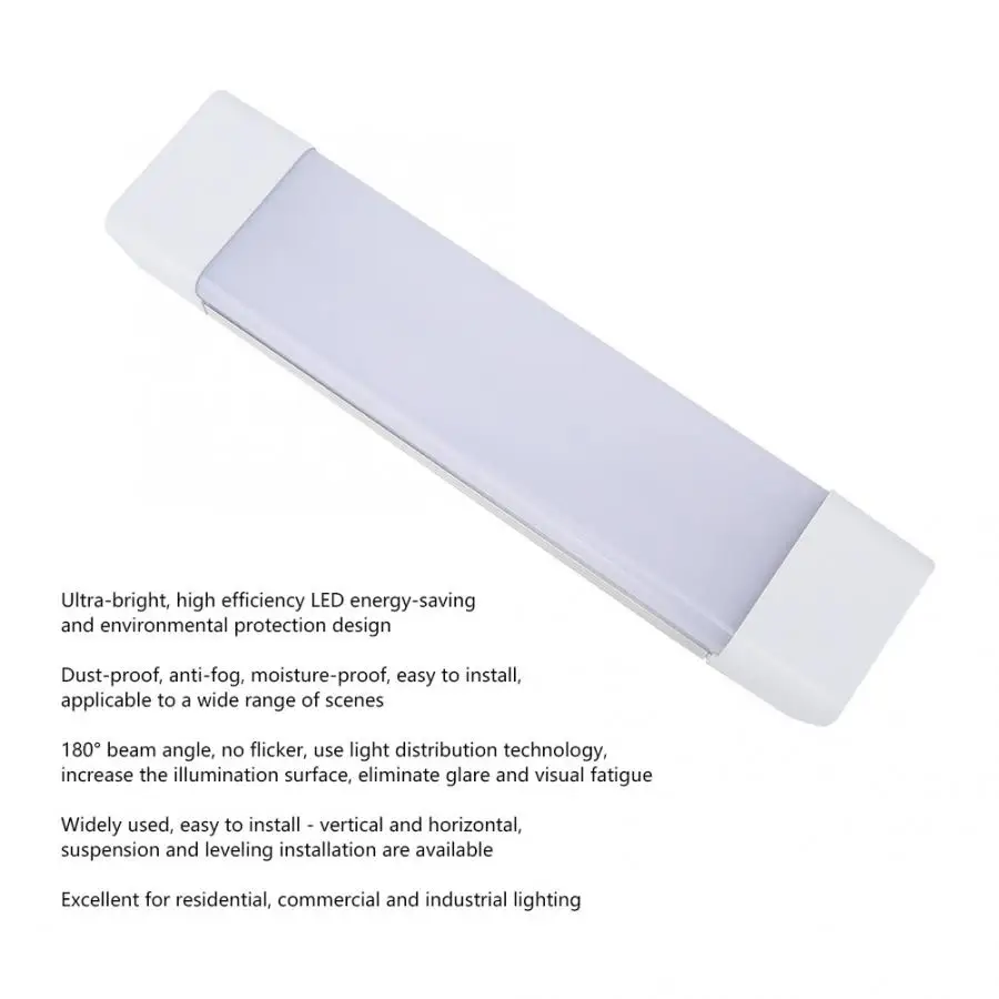 Особенности: 1. Ультра-яркая, Высокоэффективная светодиодная энергосберегающая и экологичная конструкция, энергосберегающая и Экологически чистая, равномерная световая передача. 2. Пыленепроницаемый, анти-туман, влагостойкий, легко устанавливается, подходит для широкого спектра сцен. 3. Угол луча 180 °, отсутствие мерцания, использование технологии распределения света для расширения источника света светодиодного пятна к источнику света поверхности, увеличение поверхности освещения, устранение и визуальная усталость. 4. CRI до 80 Ra, восстановить и истинный цвет, для вас, чтобы создать идеальную среду для жизни. 5. Широко используется, легко устанавливается-вертикальная и горизонтальная, подвеска и Выравнивающая установка доступны. Отлично подходит для жилого, коммерческого и промышленного освещения. 6. Подходит для мастерских, офисов, рабочих столов, кухонь, подвалов, гаражей, коридоров, школ, прачечных, различных комнат и комнат отдыха и т. д. Спецификация: Состояние: 100% новый бренд Материал: ПК + алюминиевый сплав По желанию стиль: 6000K 1ft 12 Вт AC185-260V, 4000K 1ft 12 Вт AC185-260V, 6000K 1ft 12 Вт AC85-265V, 4000K 1ft 12 Вт AC85-265V, 6000K 2ft 27 Вт AC185-260V, 4000K 2ft 27 Вт AC185-260V, 6000K 2ft 27 Вт AC85-265V, 4000K 2ft 27 Вт AC85-265V Источник света: 2835 LED Мощность: 12 Вт/27 Вт Цветовая температура: 4000K/6000K Уровень водонепроницаемости: IP65 Размеры: прибл. 0. / 11,8 дюймов (1ft), 0,6 м/23,6 дюйма (2ft) Вес: прибл. 165-263 г В комплект входит: 1 х Светодиодные полосы света 2 x винт (с вилкой)