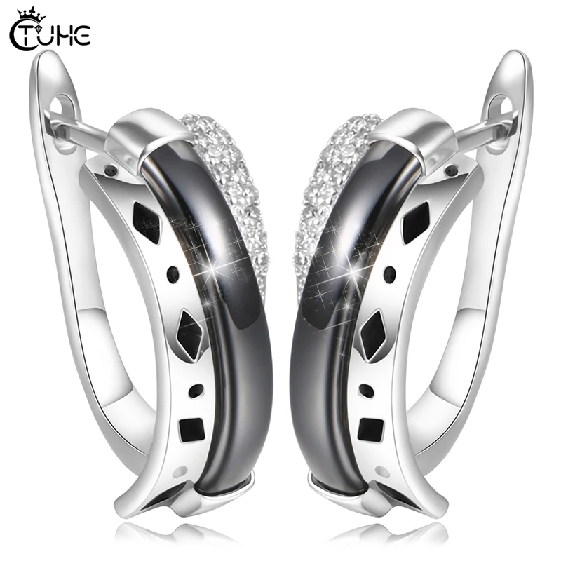 Женские серьги-гвоздики с натуральным цирконом, керамические серьги U-образной формы с кристаллами