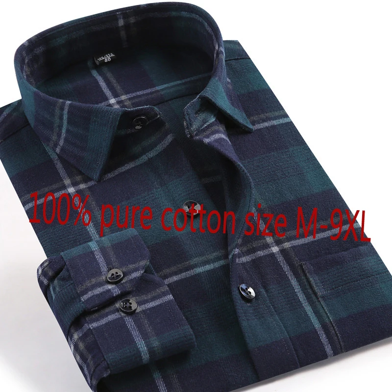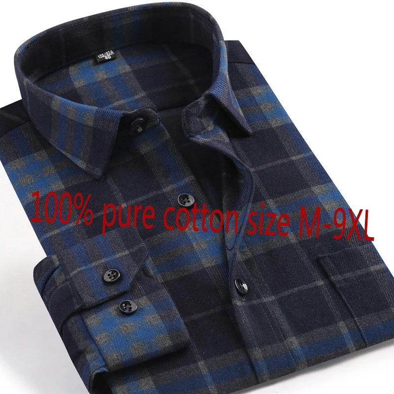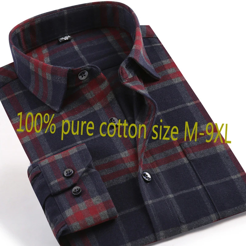 Новое поступление Осенняя мужская рубашка с длинными рукавами 100% повседневные рубашки из чистого хлопка клетчатые толстые фланелевые Большие размеры M-2XL3XL4XL5XL6XL7XL8XL9XL