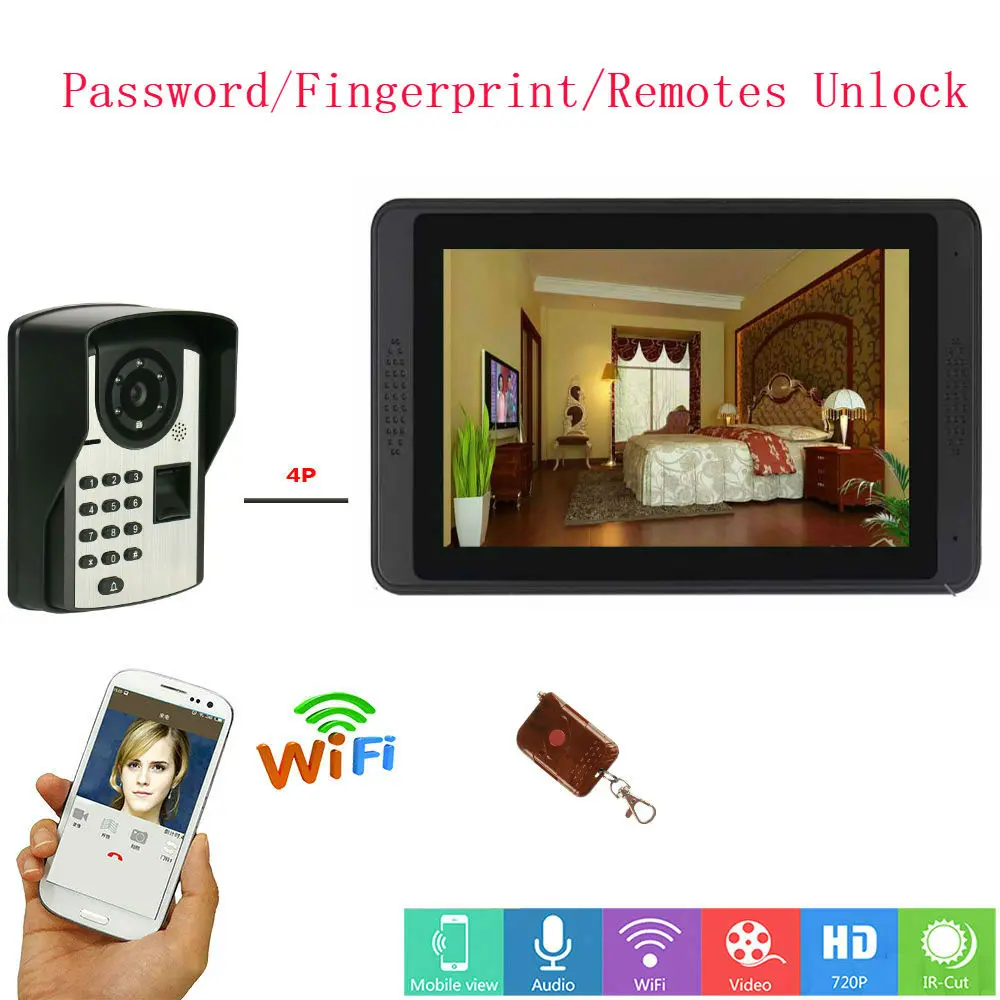 SmartYIBA 7 дюймов проводной wi-fi-отпечаток пальца видео телефон двери дверной звонок Домофон Система с системой контроля доступа двери