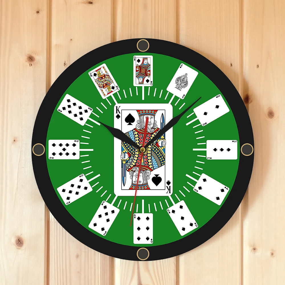 Круглые часы с рисунком покерного моста, креативные подвесные настенные часы с лопаткой, игральными картами, подарок для игрока 12 дюймов