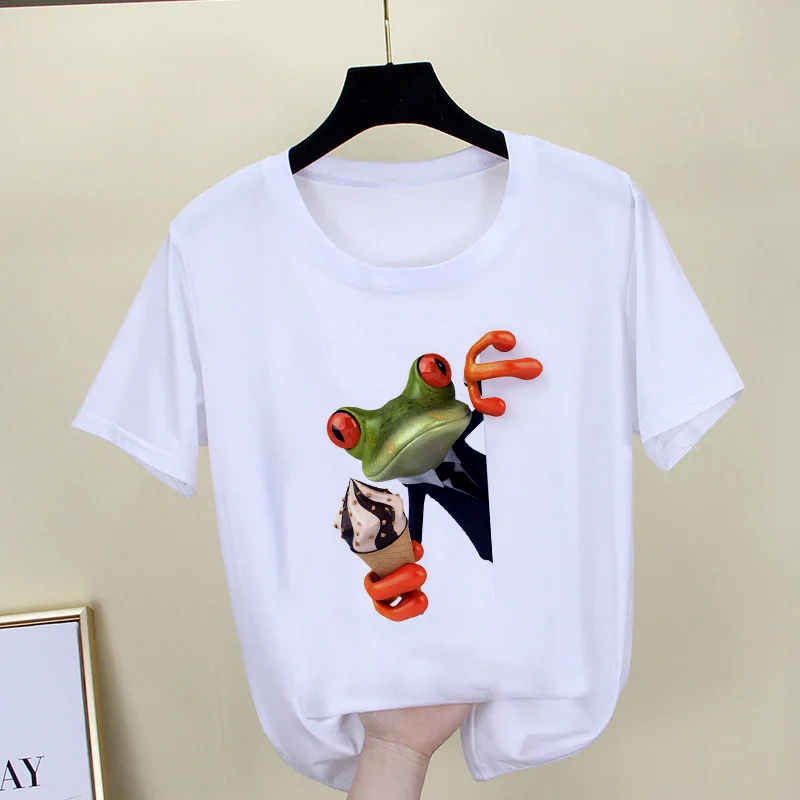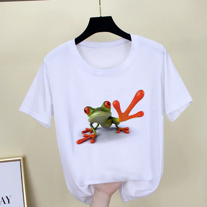 2021 Новая индивидуальная футболка с принтом лягушки, женская модна...