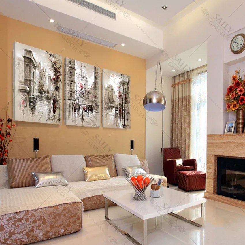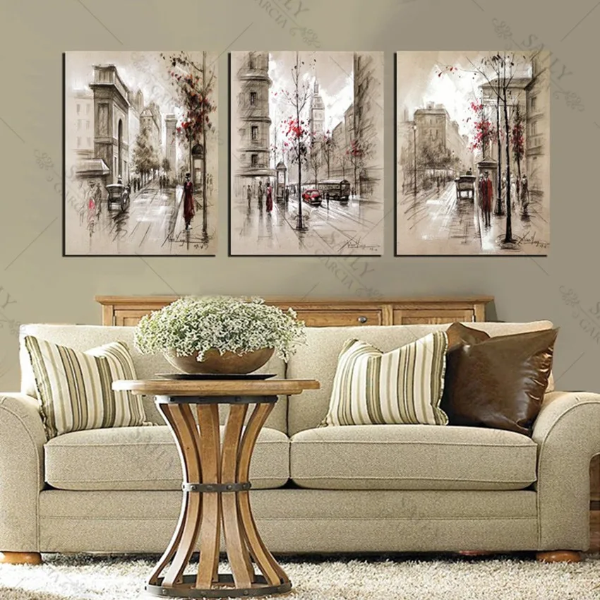 Картины на холсте домашний декор HD принты плакаты 3 шт. абстрактный городской уличный пейзаж картины для гостиной Настенная картина