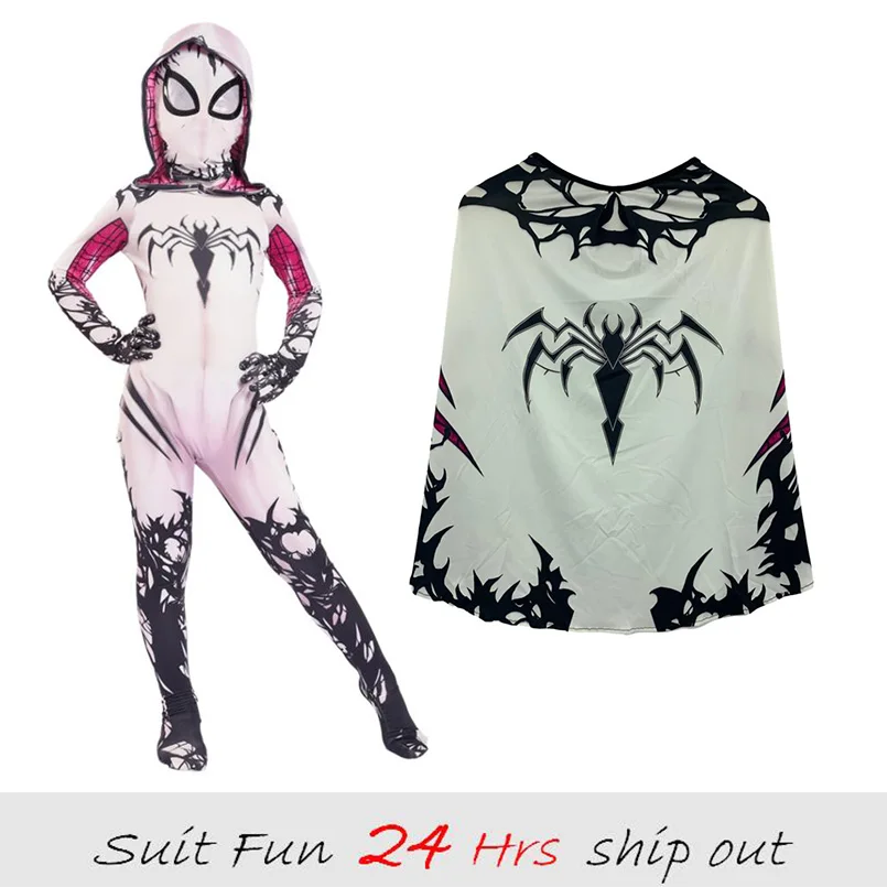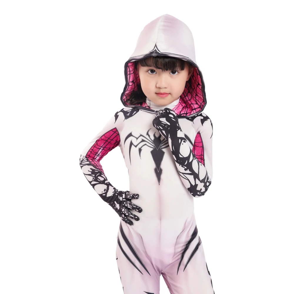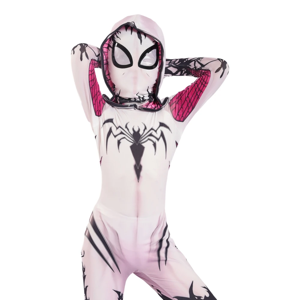 Костюмы для косплея девушки паук-Гвен белые толстовки из спандекса с головным убором костюмы подходят для Хэллоуина Доставка 24 часа