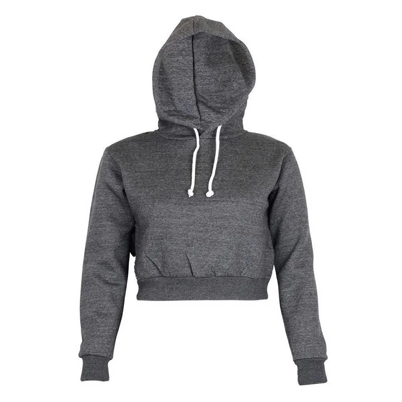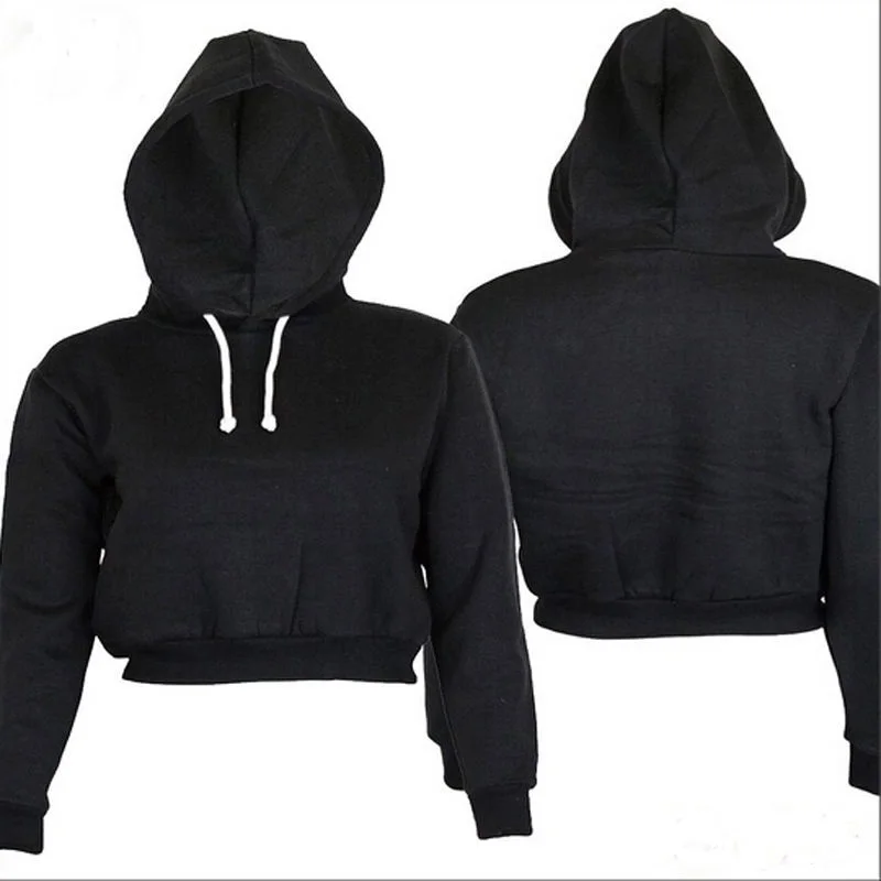 Новый женский модный однотонный укороченный топ с капюшоном и длинн...