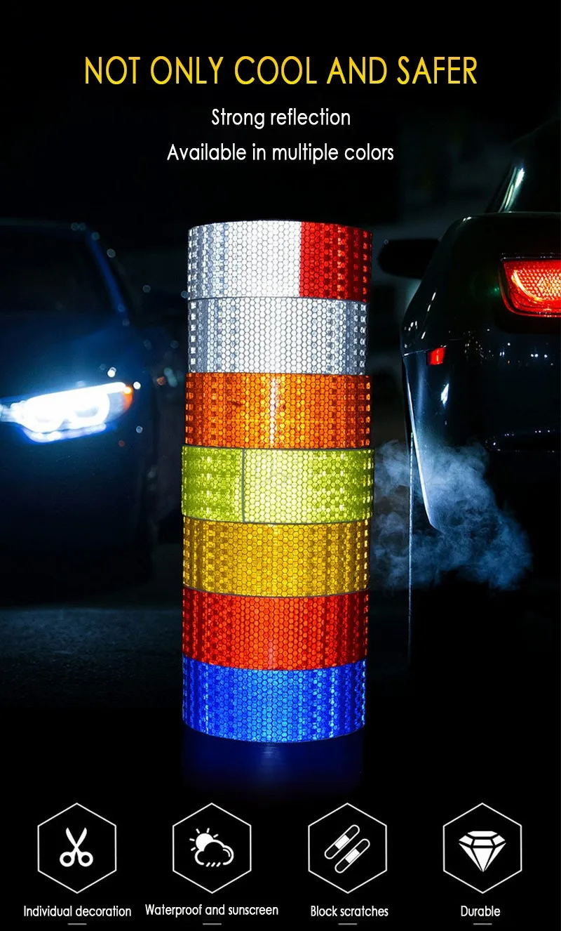 Светоотражающая лента, белый, красный, желтый свет, 5 см x 3 м, аксессуары для велосипедов, мотоциклов, грузовиков, прицепов