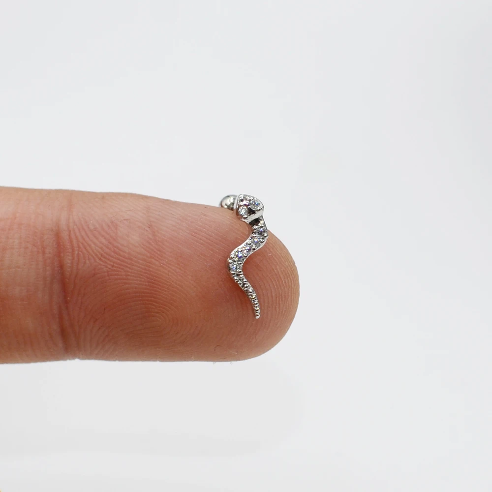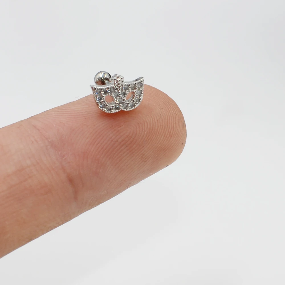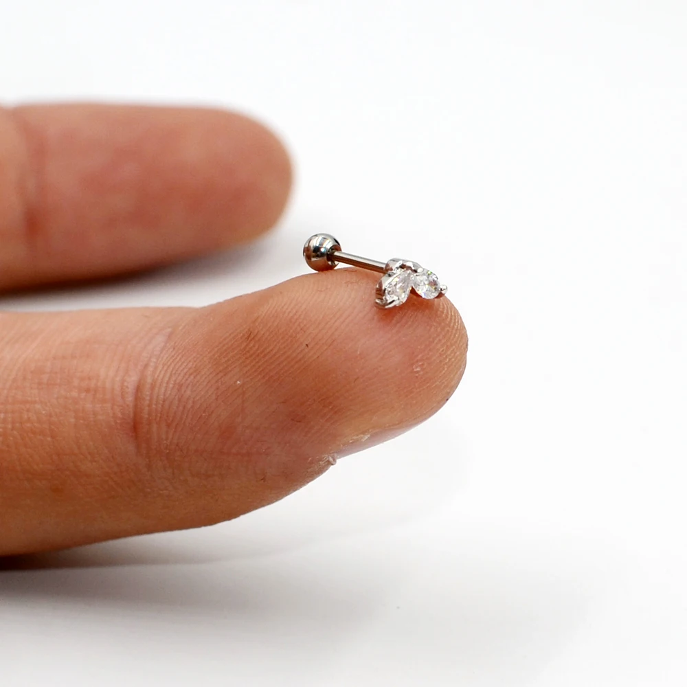 Серьги-гвоздики из нержавеющей стали с фианитами для пирсинга, украшения для хряща, Луны, сердца, цветка, завитка ушной раковины, пупка, раковины, 1 шт.