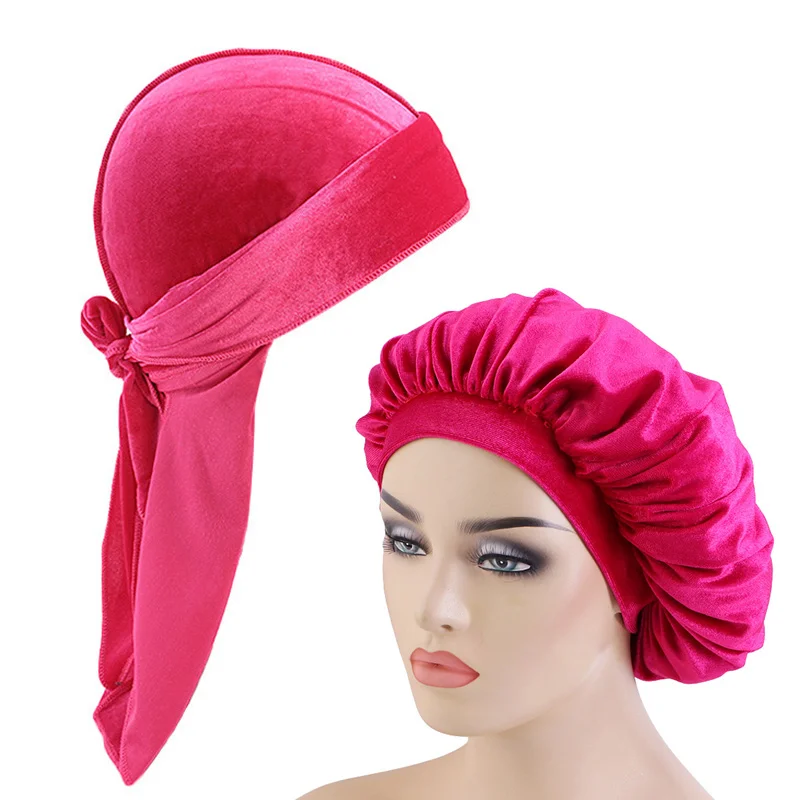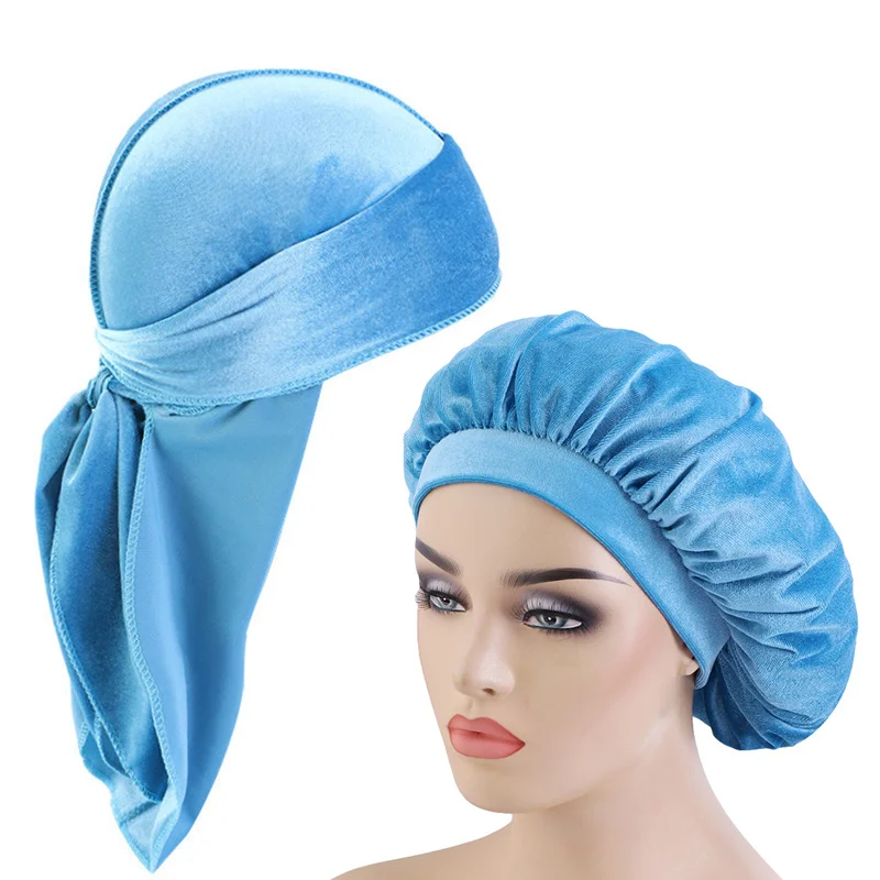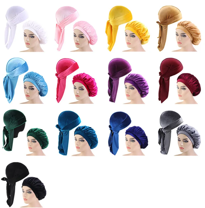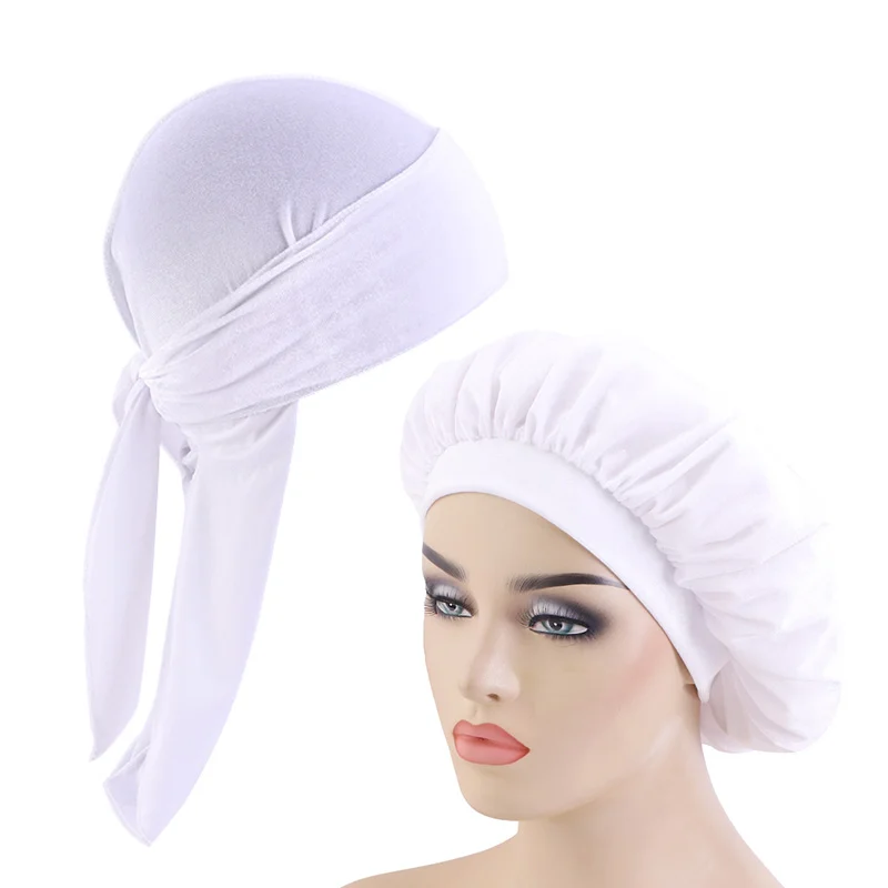 Мужская бархатная бандана Durag 2 шт.лот, головные уборы, однотонная широкая шляпа Doo Rag, удобная бархатная шляпа для сна