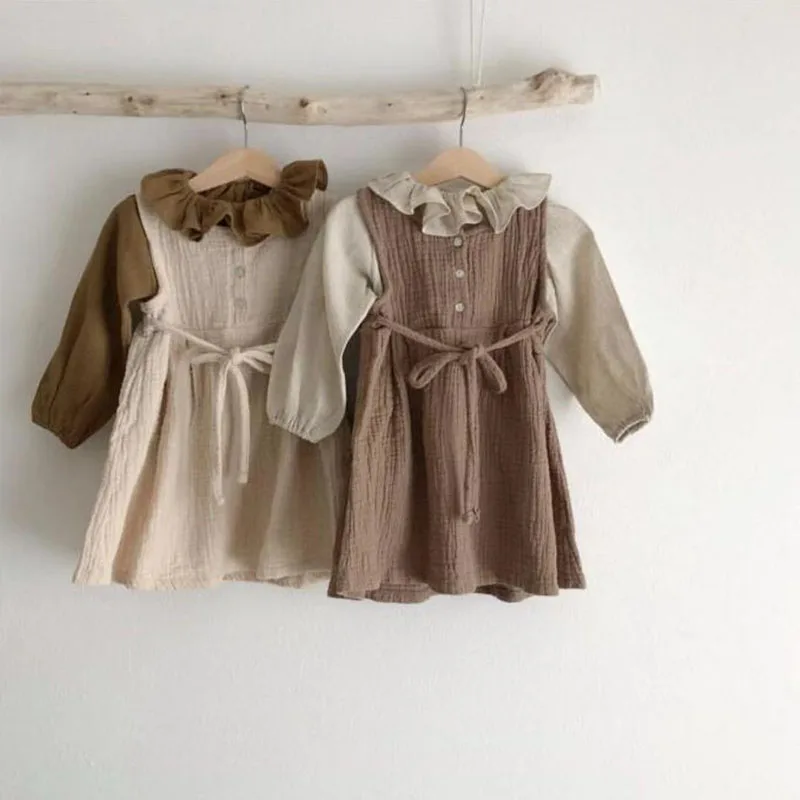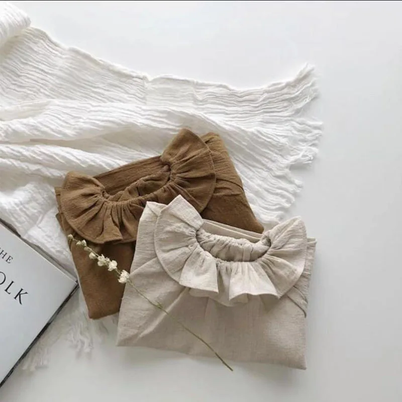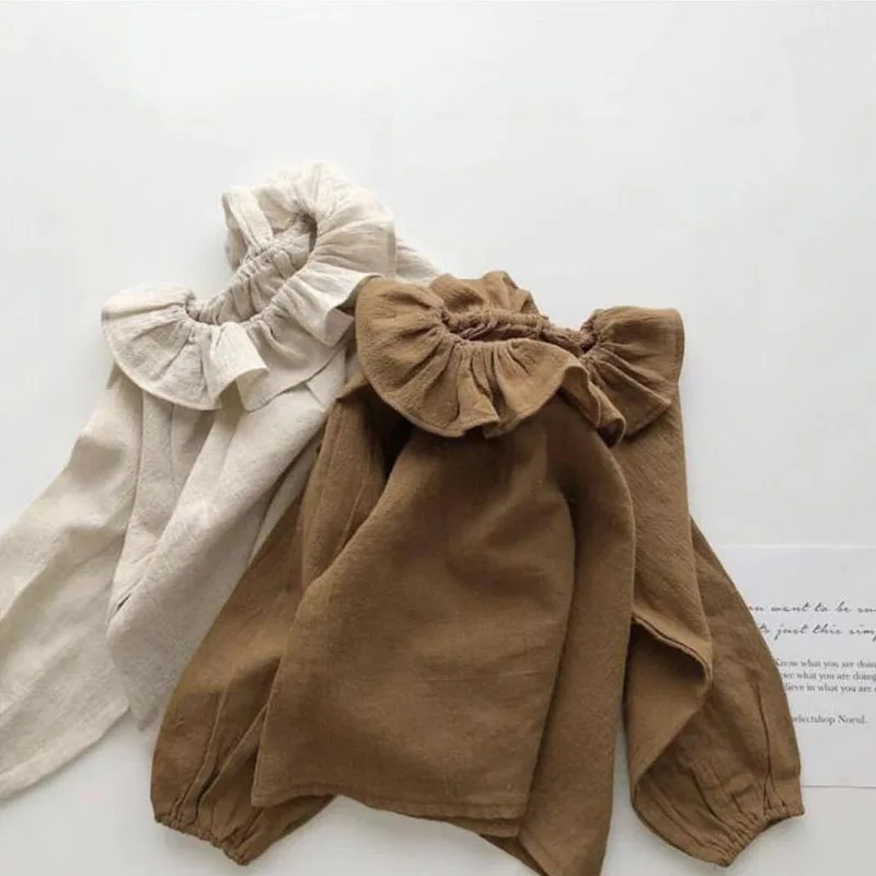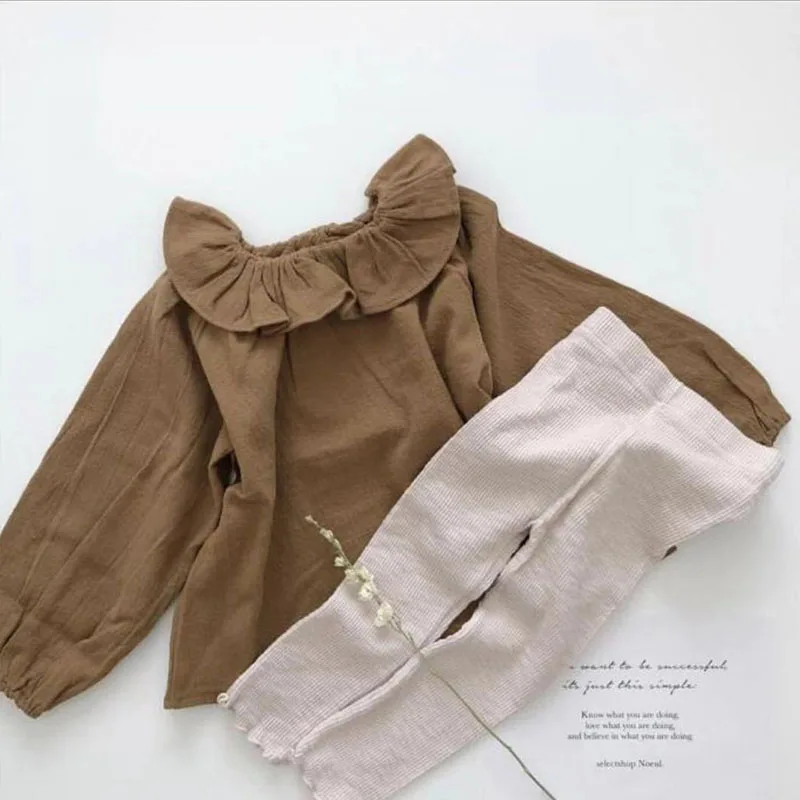 2019 корейская Блузка с оборками для маленьких девочек осенне-зимние топы с длинными рукавами для маленьких девочек Детские льняные мягкие топы, корейский топ