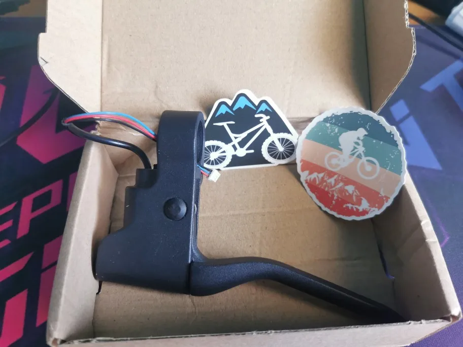получил,поставил полностью заменив старый рычаг тормоза, ставится за минут 15 ,все работает , наклейки пара была.получил на Мист експресс