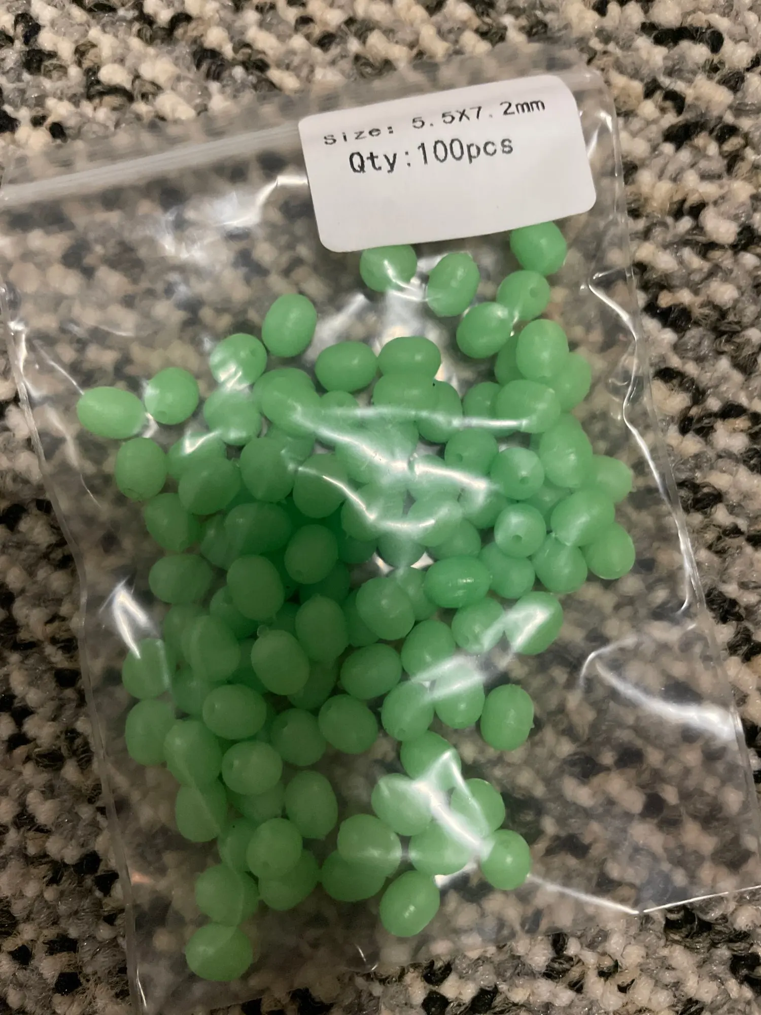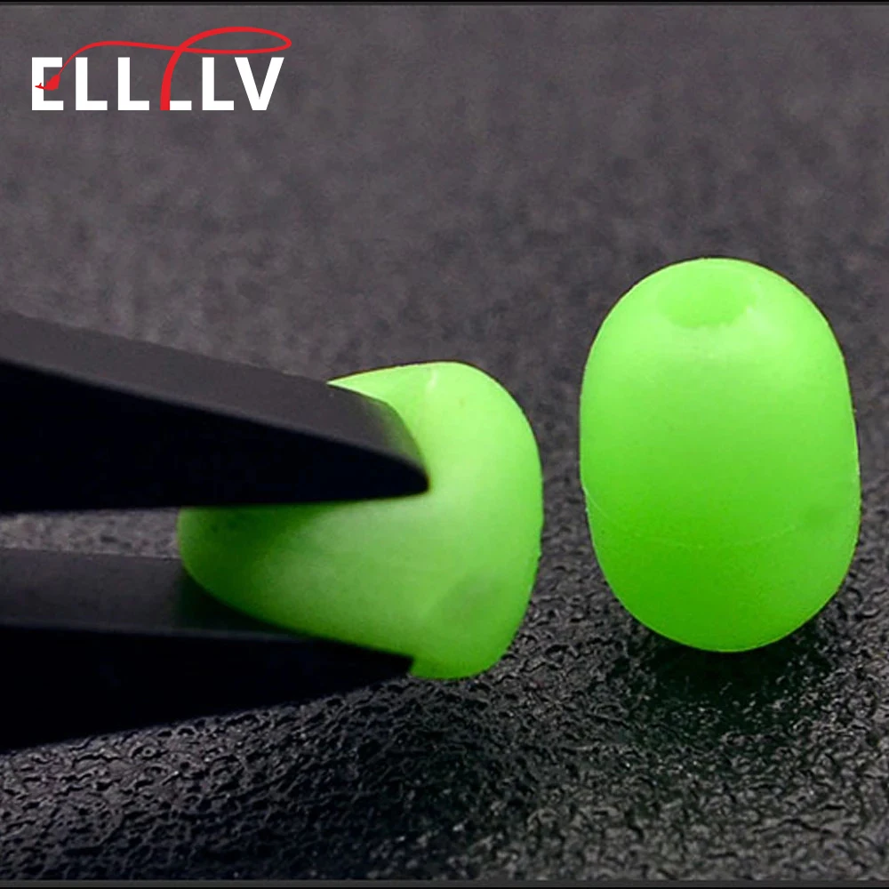 Elllv 100 шт. Зеленая морская Рыбалка цилиндрические мягкие резиновые светящиеся бусины светящиеся стопоры приманка на рыболовный крючок аксессуары