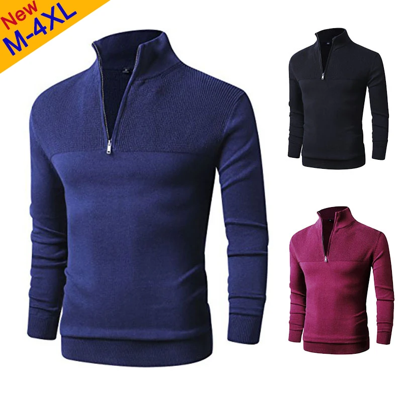 Свитер мужской с воротником-поло, на молнии