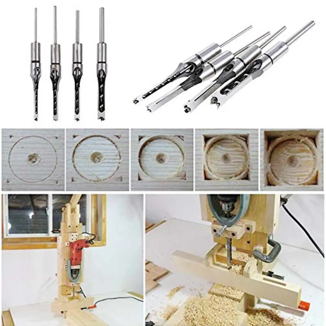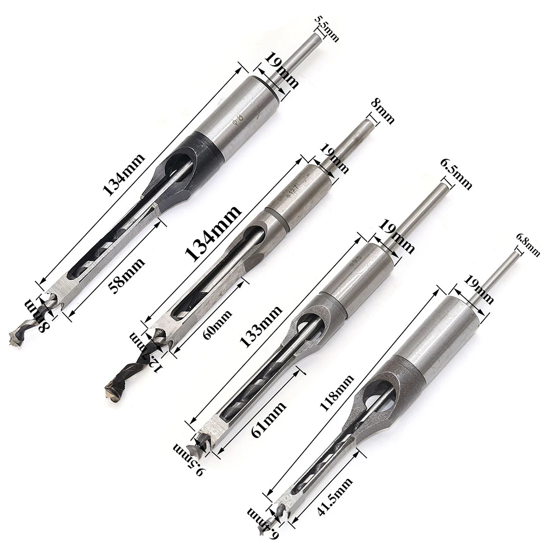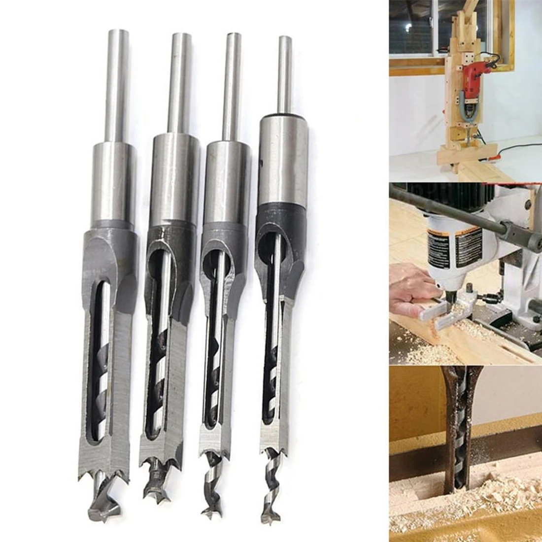6,4 мм8 мм9,5 мм12,7 мм 4 шт.компл. резец для полого квадратного отверстия, долото, шнековое сверло, деревообрабатывающий инструмент