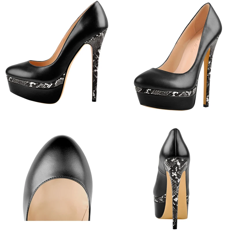 Женские туфли-лодочки Onlymaker на шпильке 12 см с черным змеиным п...