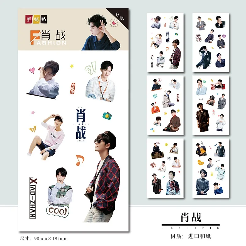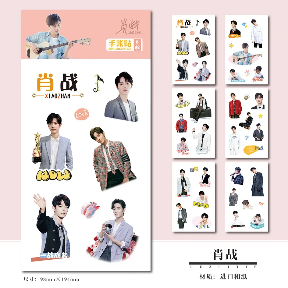6 листовНабор декоративных наклеек для скрапбукинга Chen Qing Ling Xiao Zhan, Wang Yibo