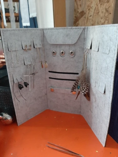 много места для размещения серёжек типа "гвоздик". есть крепление для колье или бус. ожидала большего:(