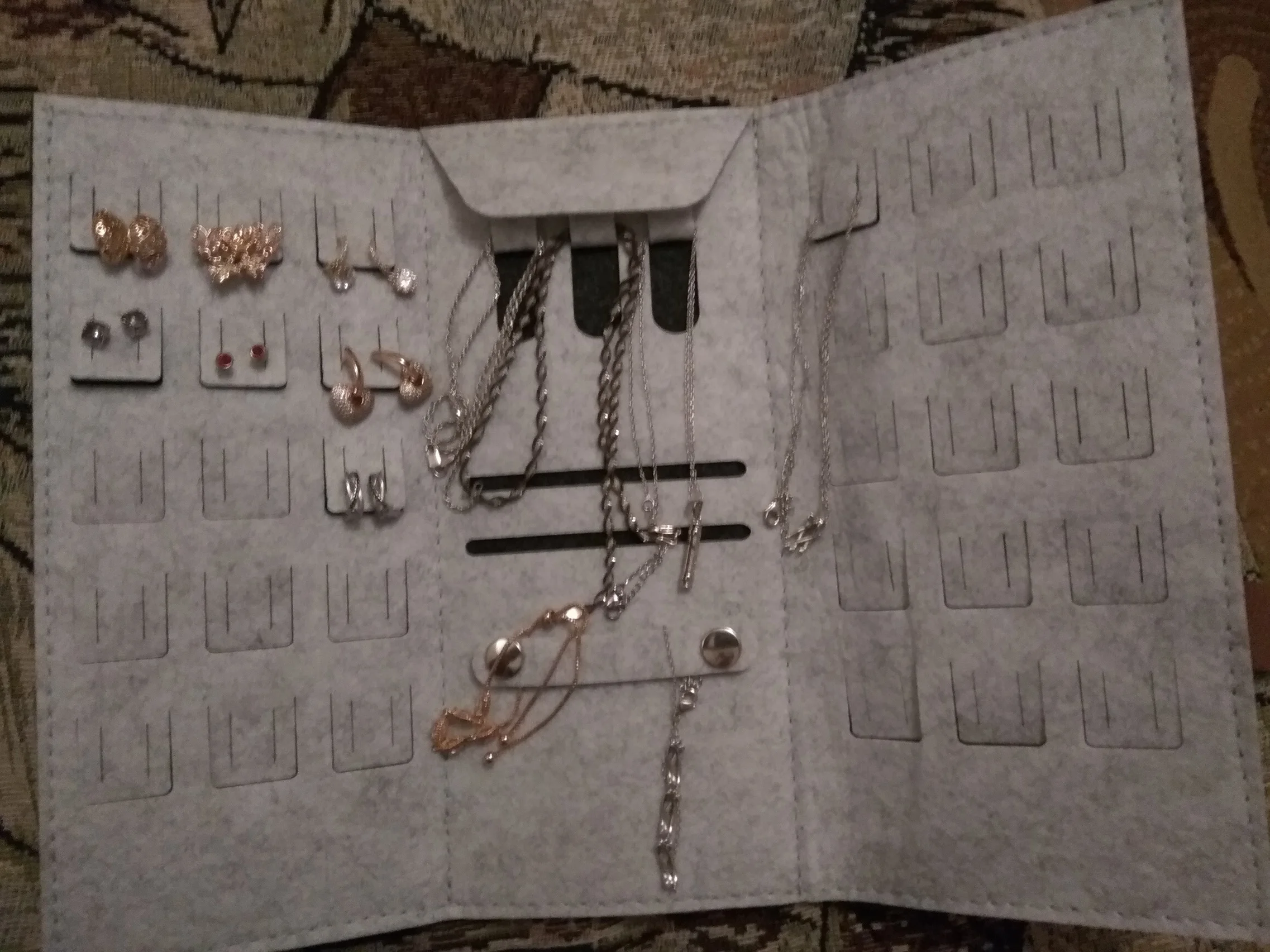 Идеально, материал выглядит жестким, и он имеет много секций, чтобы разместить серьги, браслеты и подвески, 10