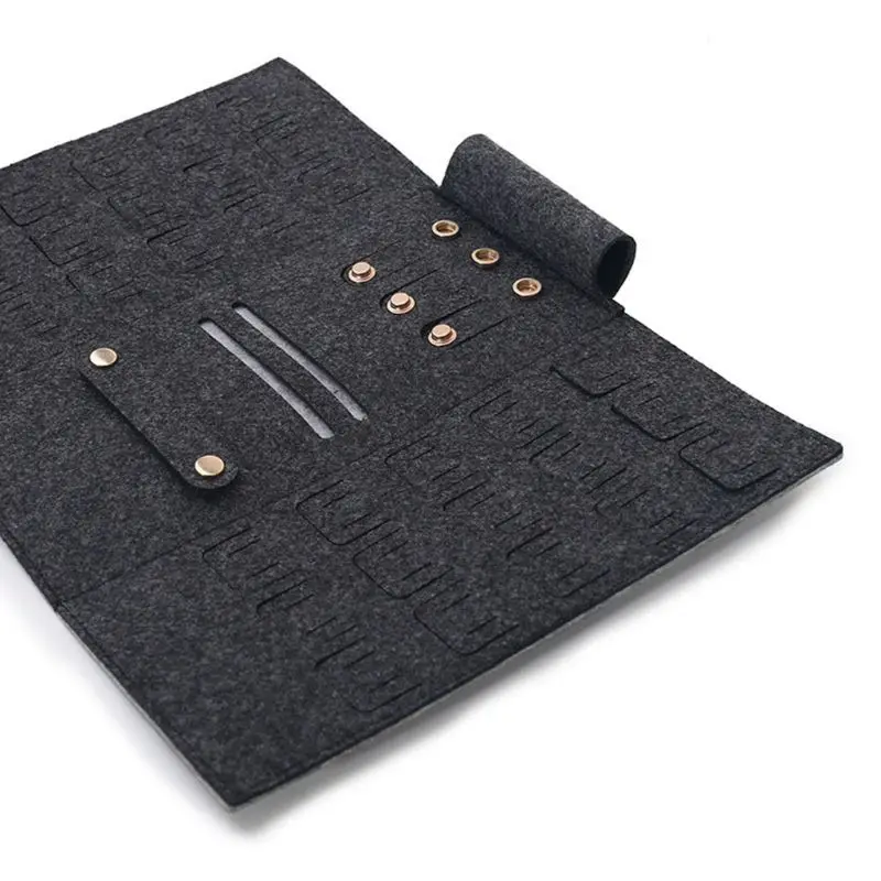 Портативный свернутый фетровый мешок для хранения ювелирных изделий в рулоне, складной дорожный контейнер для хранения сережек, ожерелий, браслетов, колец