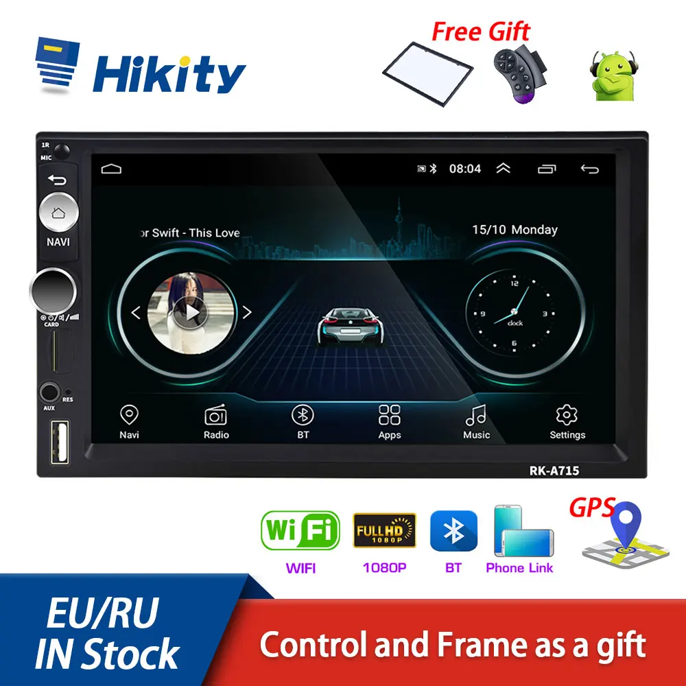 Универсальный Автомобильный мультимедийный плеер Hikity 2din Android, GPS-навигация, Bluetooth, Авторадио 7 дюймов, HD, автомобильное аудио, Wi-Fi, USB, Mirror Link