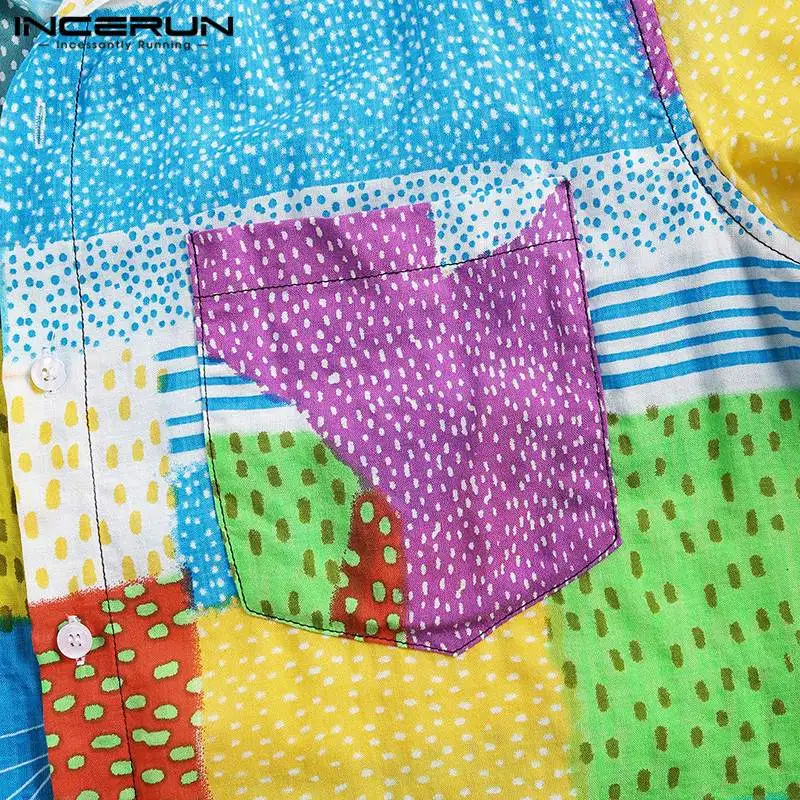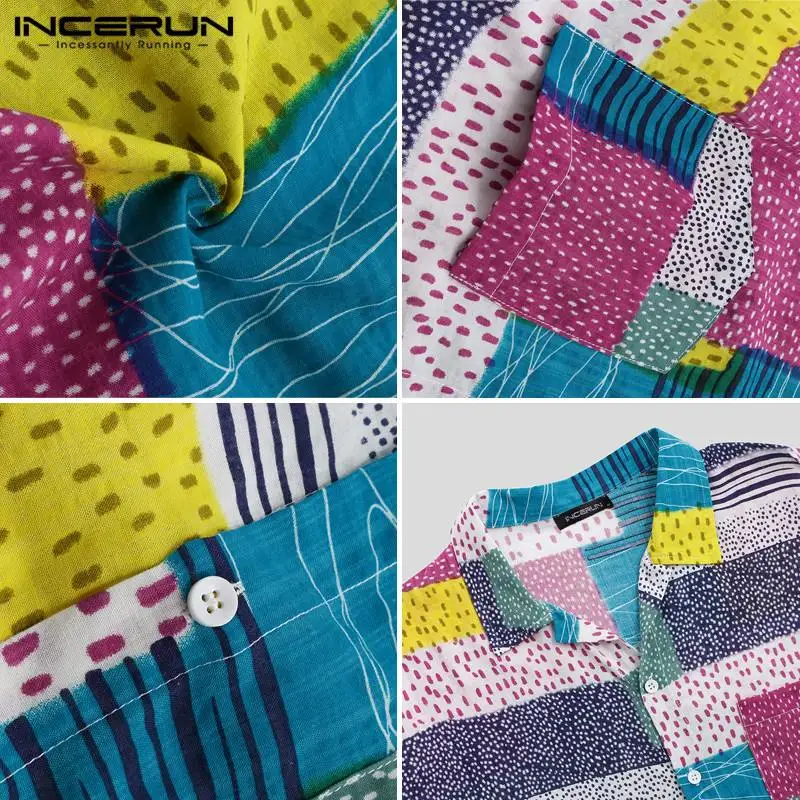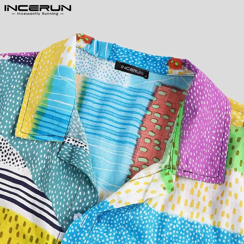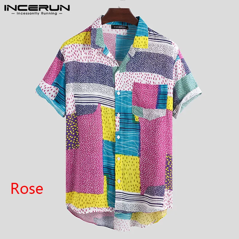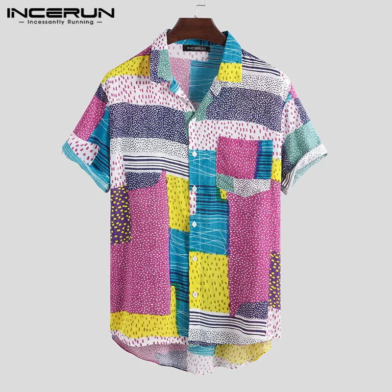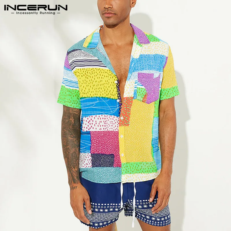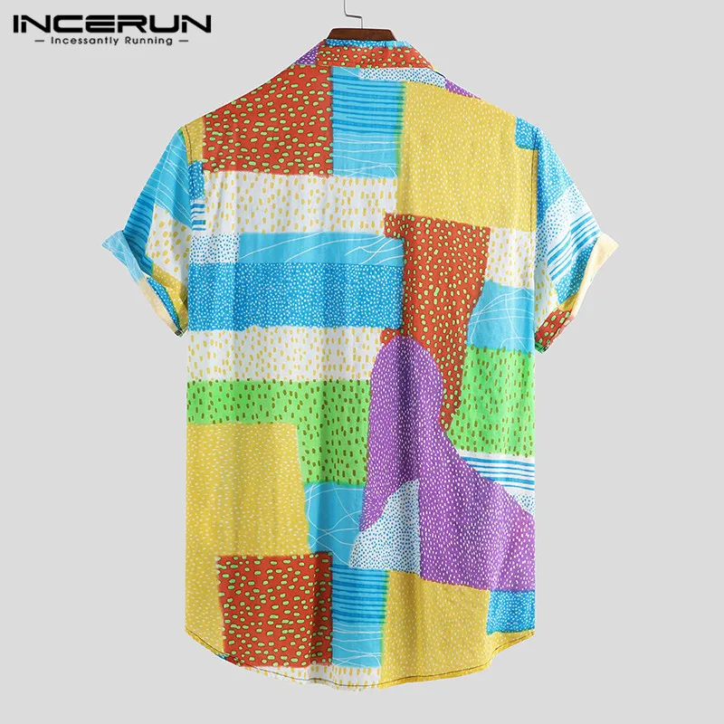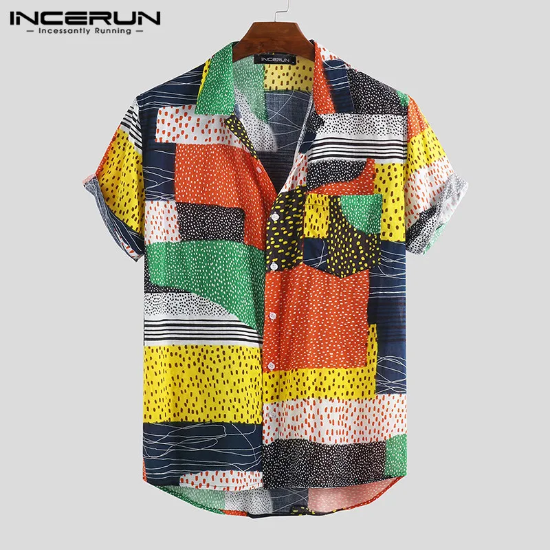 INCERUN, летняя гавайская рубашка для мужчин, с принтом, с коротким рукавом, с отворотом, с вырезом, дышащая, уличная блузка, для пляжа, отдыха, повседневные мужские рубашки, 2020