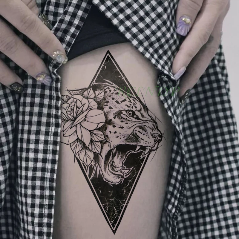 Водостойкая Временная тату-наклейка, леопард, Олива, лист, пантера,...