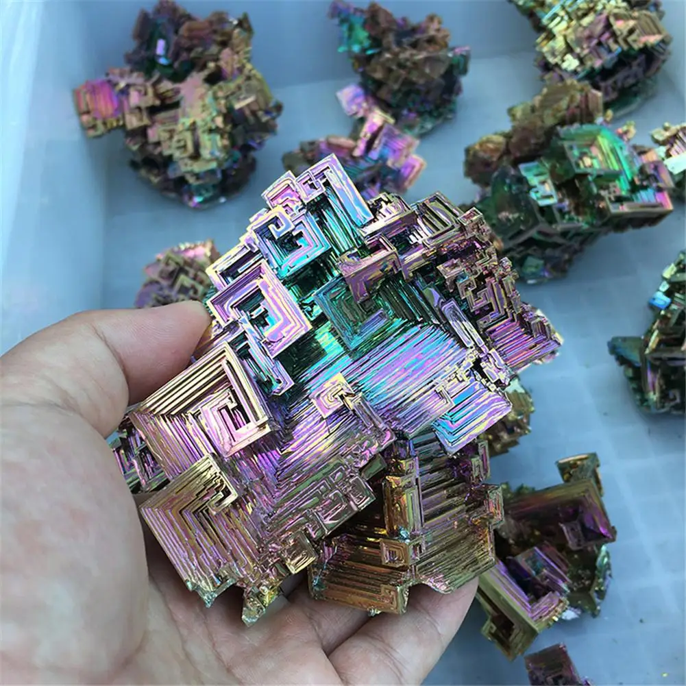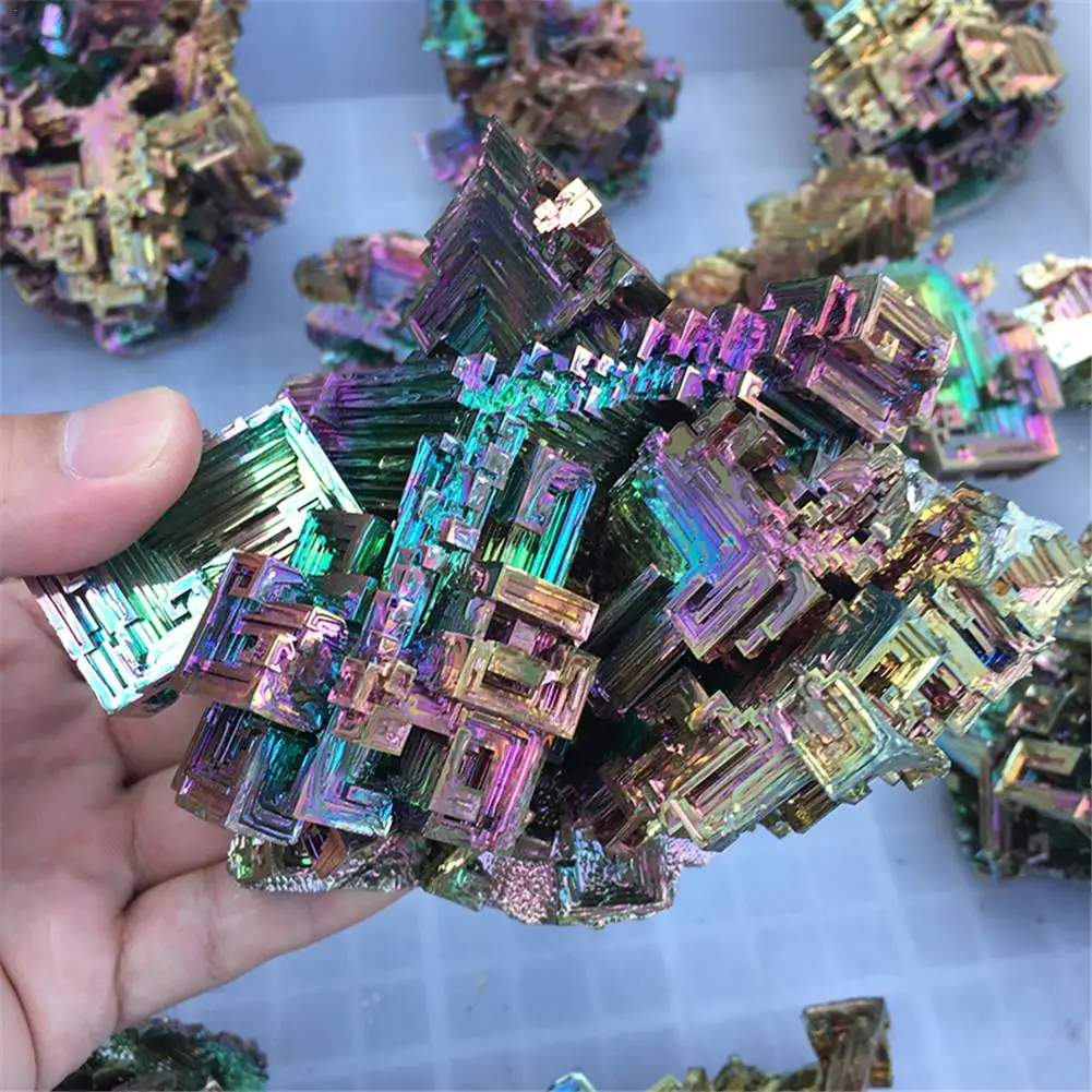 Радужный титановый образец висмута, минеральный драгоценный камень, кристалл, кварц, камень, Декор, натуральное украшение для аквариума, гравий, украшения