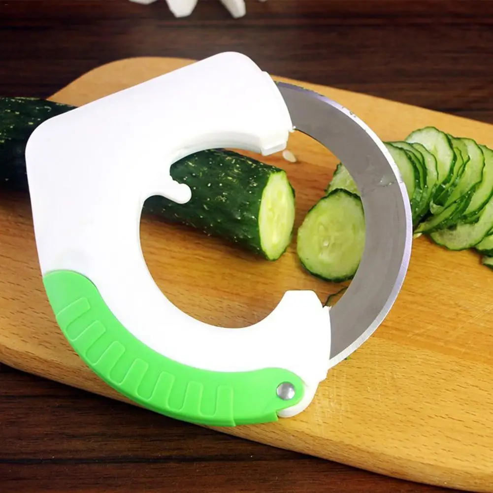 1. Круглое лезвие: этот нож использует круговое лезвие, которое проходит по всей окружности ручки, что позволяет катать его на разделочной доске, как игрушечный Одноколесный велосипед.2. Острое лезвие: подвижное движение делает его особенно полезным для нарезки предметов, с острым лезвием, которое позволяет ему проходить через все, от овощей и фруктов до хлеба и мяса.3. Советы: изделие для еды должно быть достаточно коротким, чтобы лезвие полностью проходило через него вертикально, поэтому вам может потребоваться нарезать некоторые продукты питания.Спецификация:Материал: АБС-пластикРазмер: около 17*17,7*3 см/6,69*6,97*1,18 дюймаУпаковка: завязанная картаЦвет коробки: галстук Размер карты: около 23*17,6 см/9,06*6,93 дюймаУпаковочный лист: