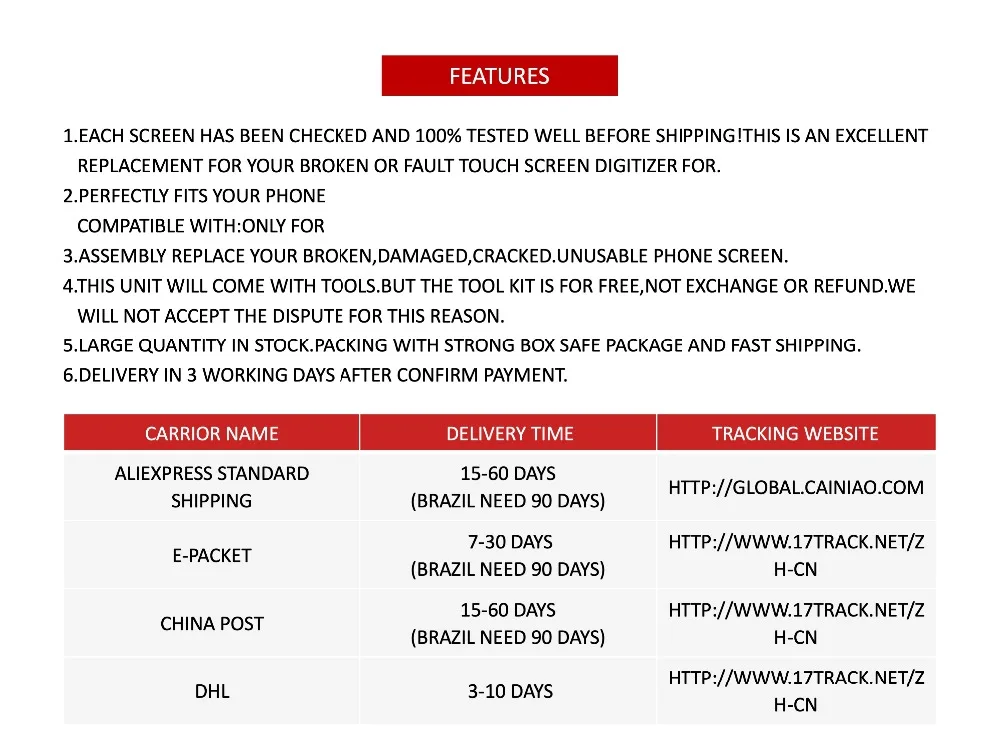 Гарантия: в течение 3 дней после получения покупателем (пожалуйста, установите кабель для проверки. Повреждение, вызванное установкой, не гарантировано)..