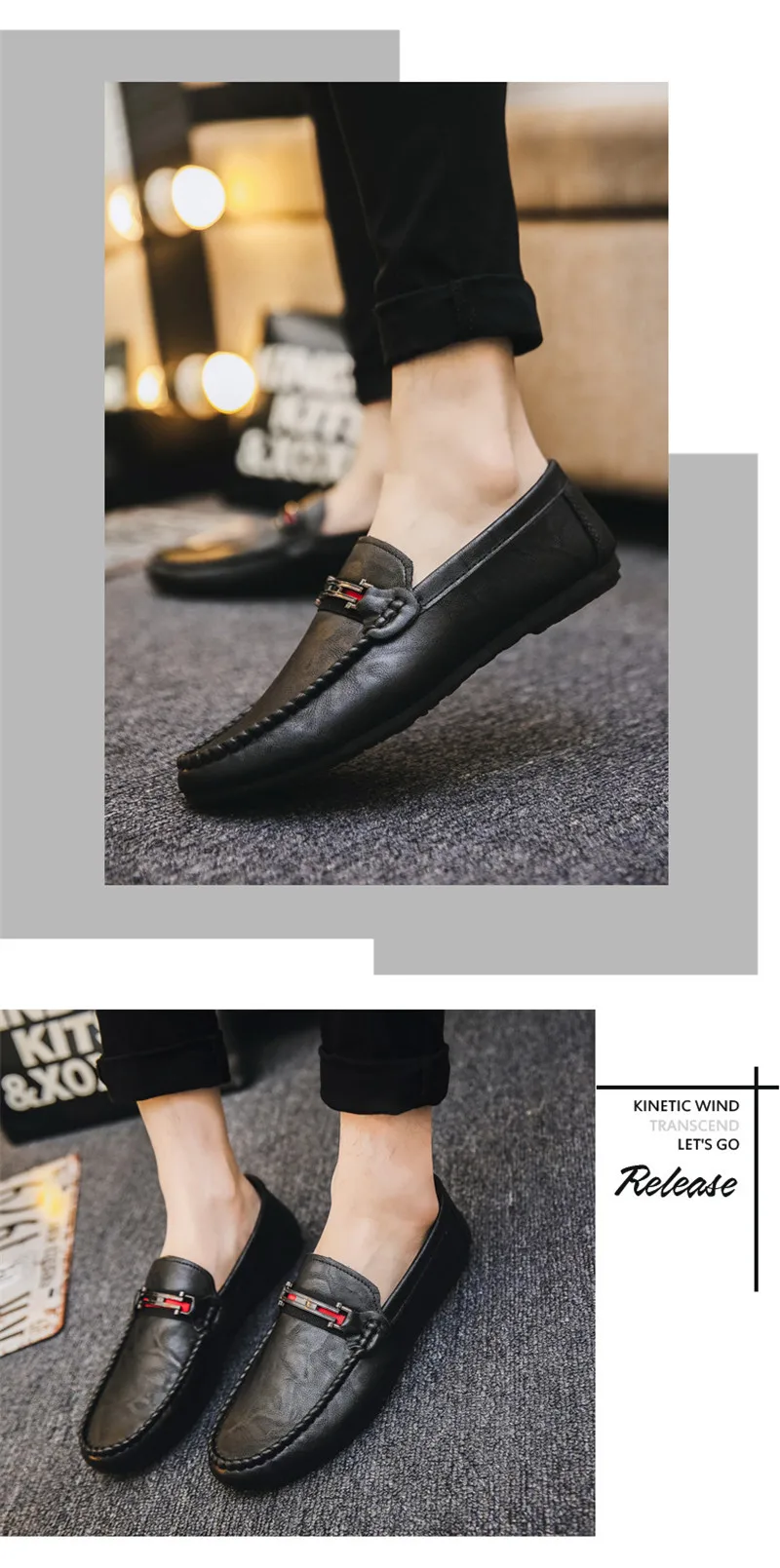 Туфли мужские кожаные дышащие, роскошные брендовые, лоферы, Мокасины, без застежки, Повседневная модная обувь для вождения, черные, весна-лето 2019
