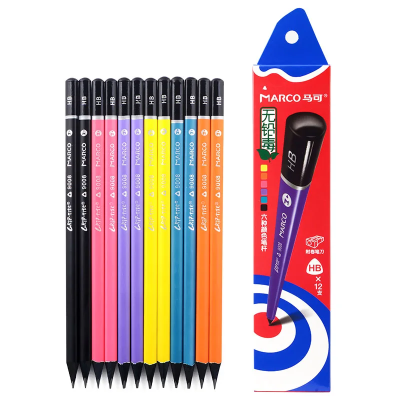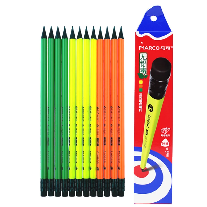 12 шт Марко 90079008 НВ градусов нетоксичный треугольник ребенок обучение черный деревянный карандаш письмо канцелярские принадлежности обратно в школу