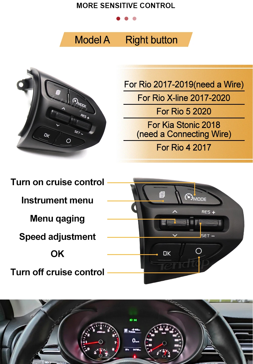 Супер! Kia Rio X 2021 года подошло идеально. Кнопки по качеству изготовления и цвет подсветки не отличим от левой стороны руля. Круиз и лимитер работают как надо с индикацией на панели приборов.