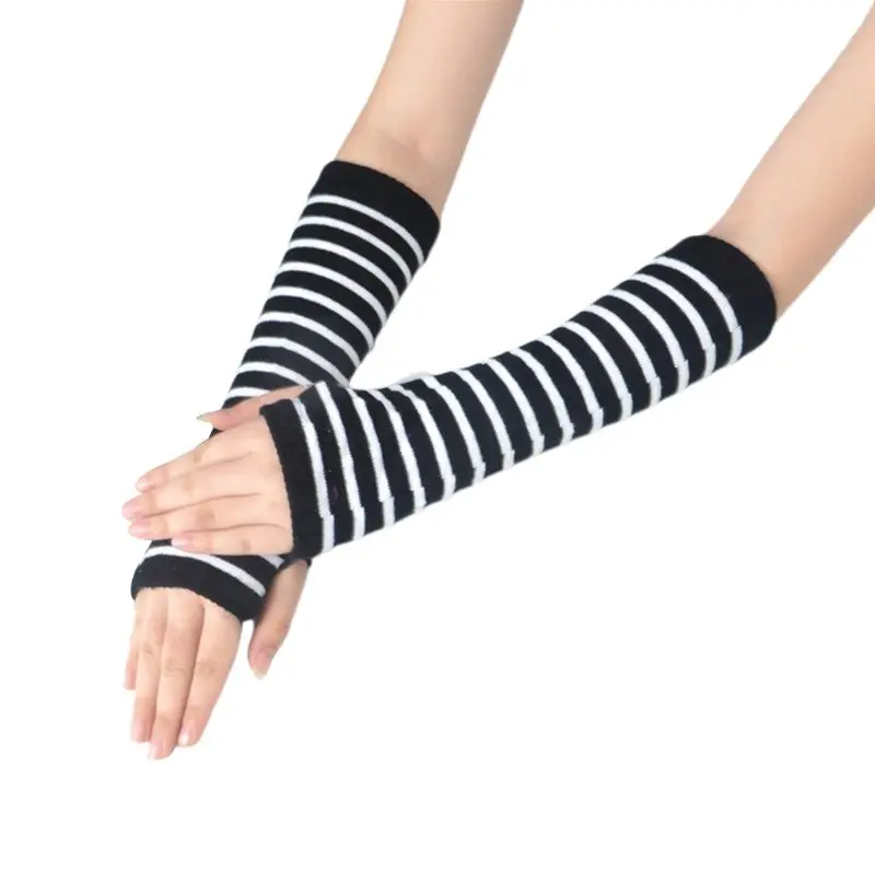 Женские вязаные перчатки без пальцев, длинные зимние эластичные перчатки до локтя с полосками и принтом, с вырезом для большого пальца