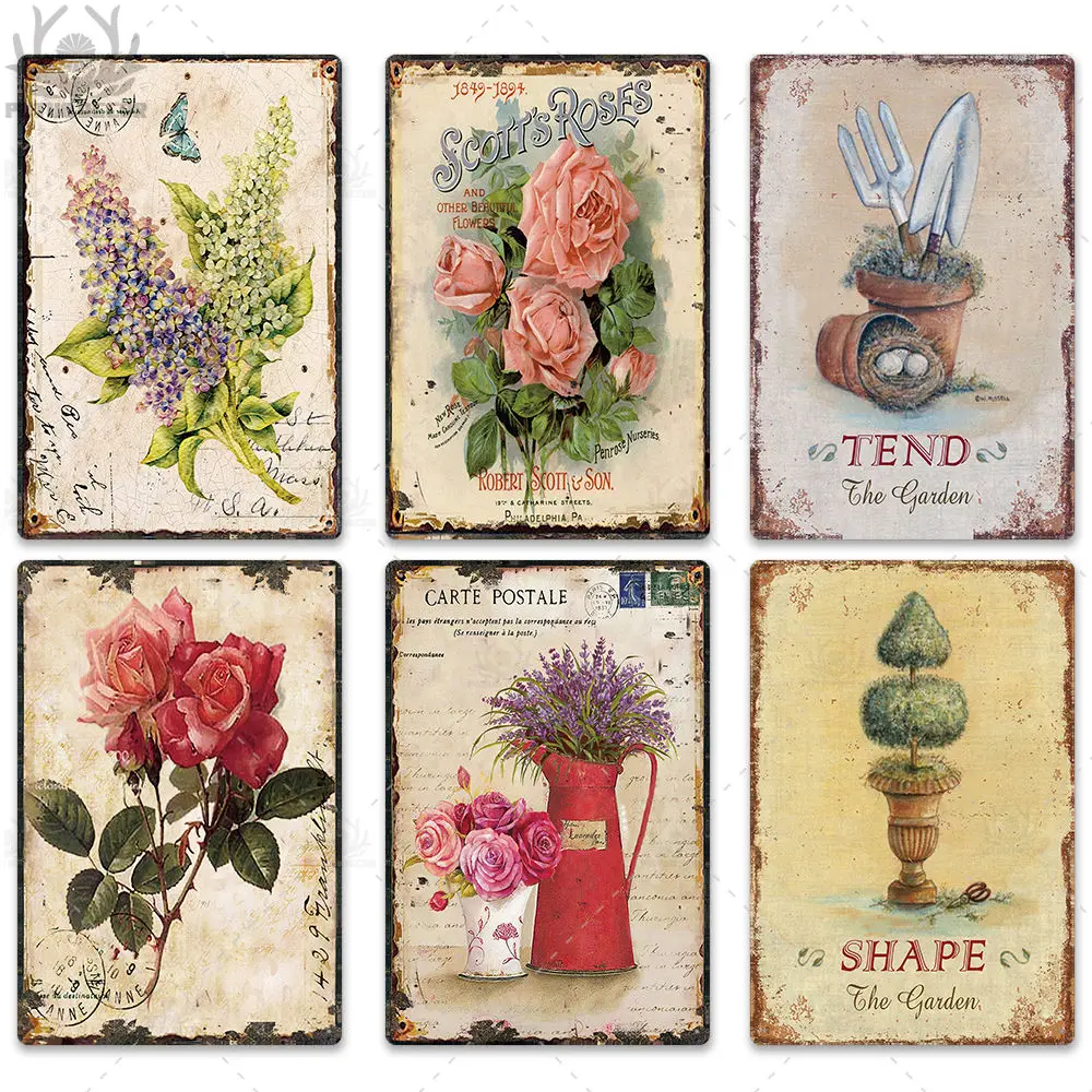 Цветок Винтаж жестяной знак домашний Декор Ретро металлический знак потертый шик Настенный декор для кухни гостиной столовой металлическая пластина