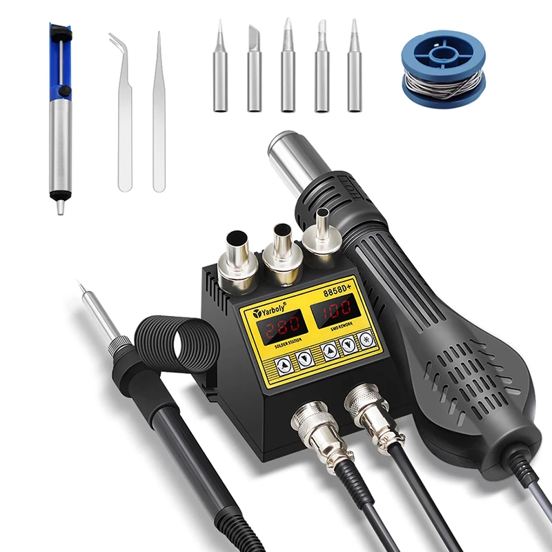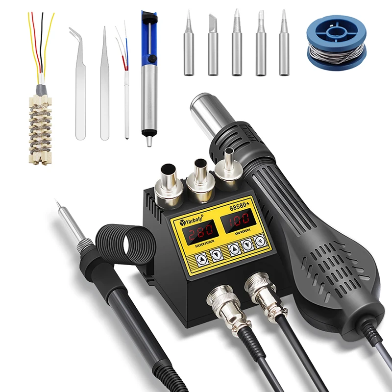 Портативная паяльная станция Yarboly 8858D +, база с паяльником и термофеном для починки микросхем, VS 8858 8586