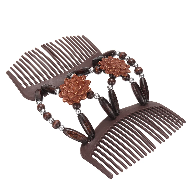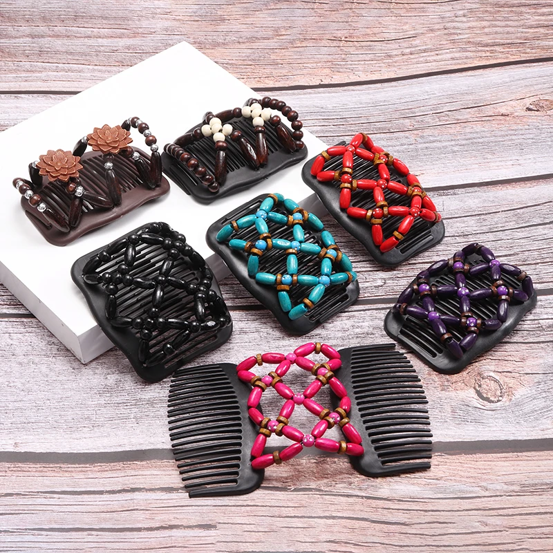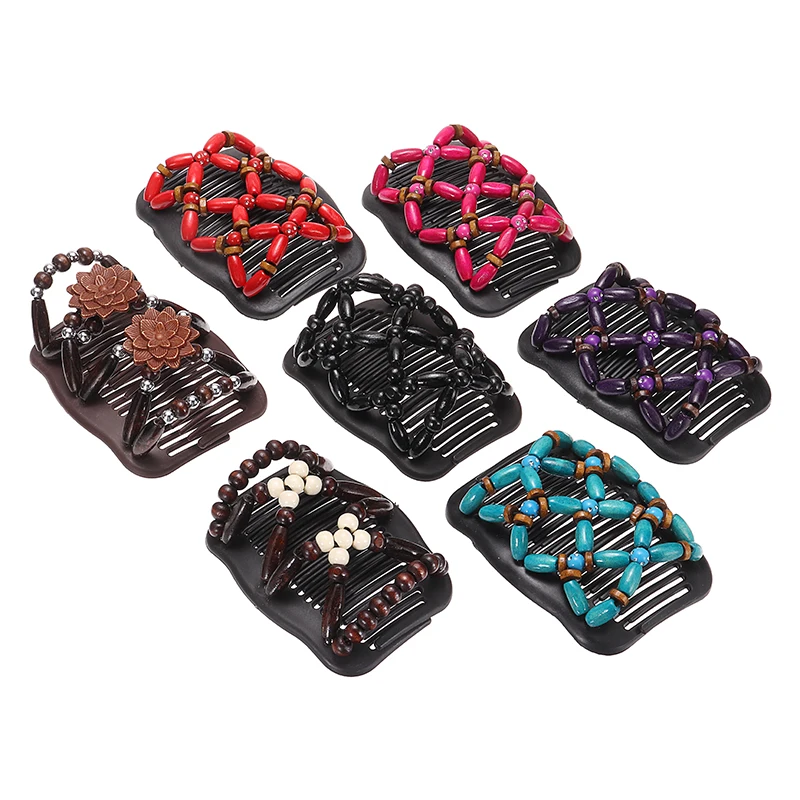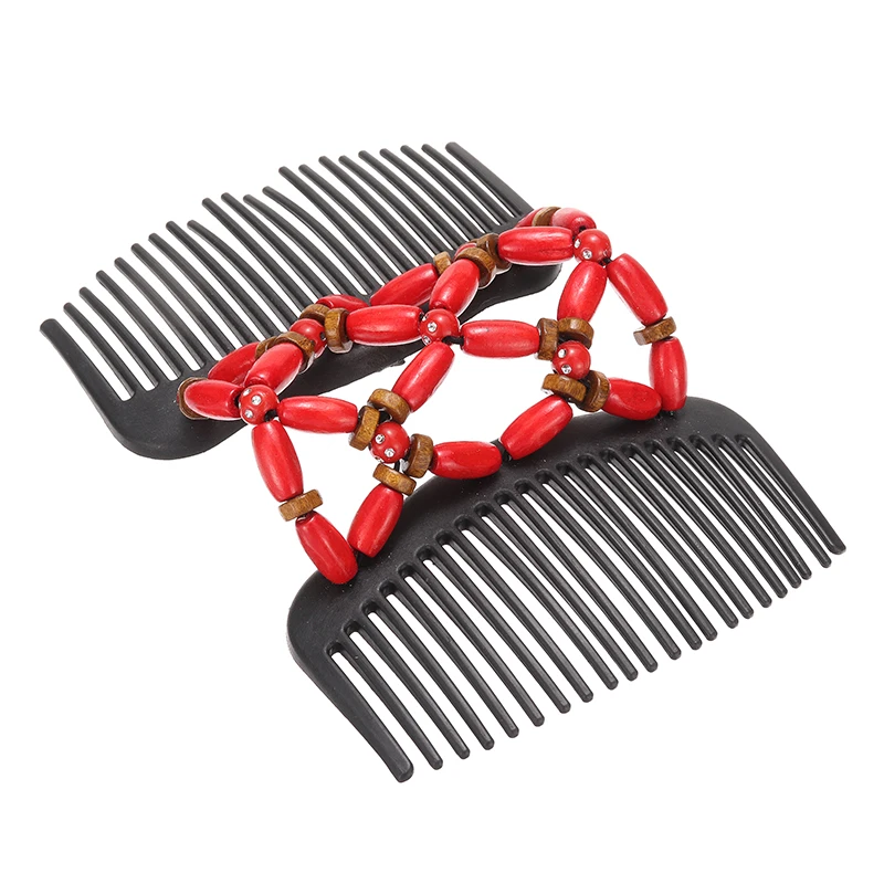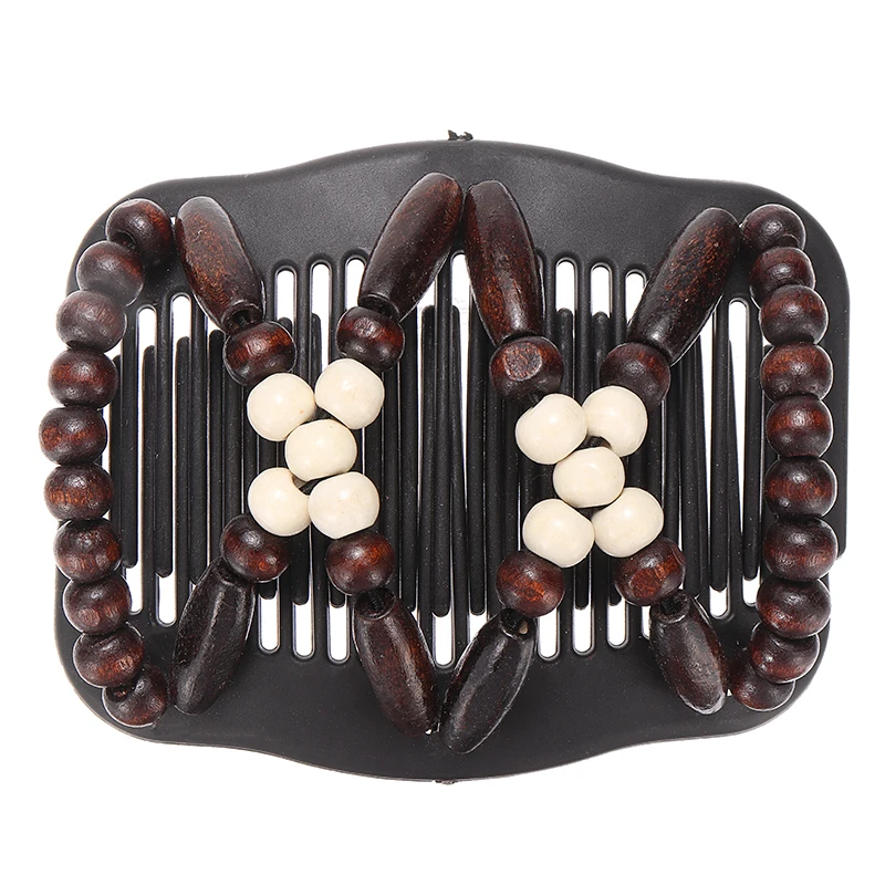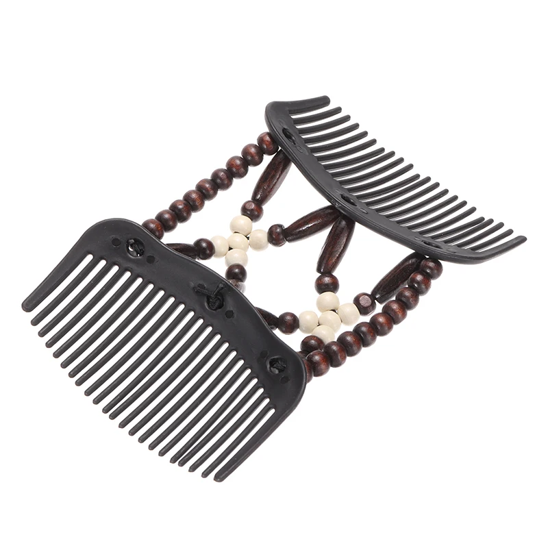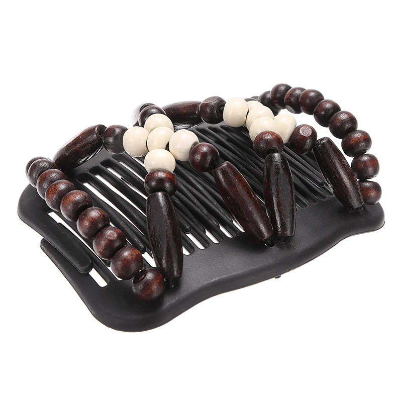 Женская заколка для волос, компактная эластичная заколка с двумя вставками и бисером, аксессуары для волос
