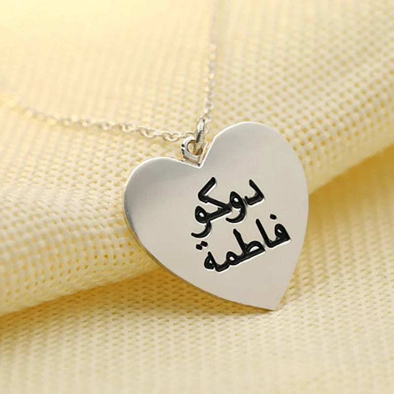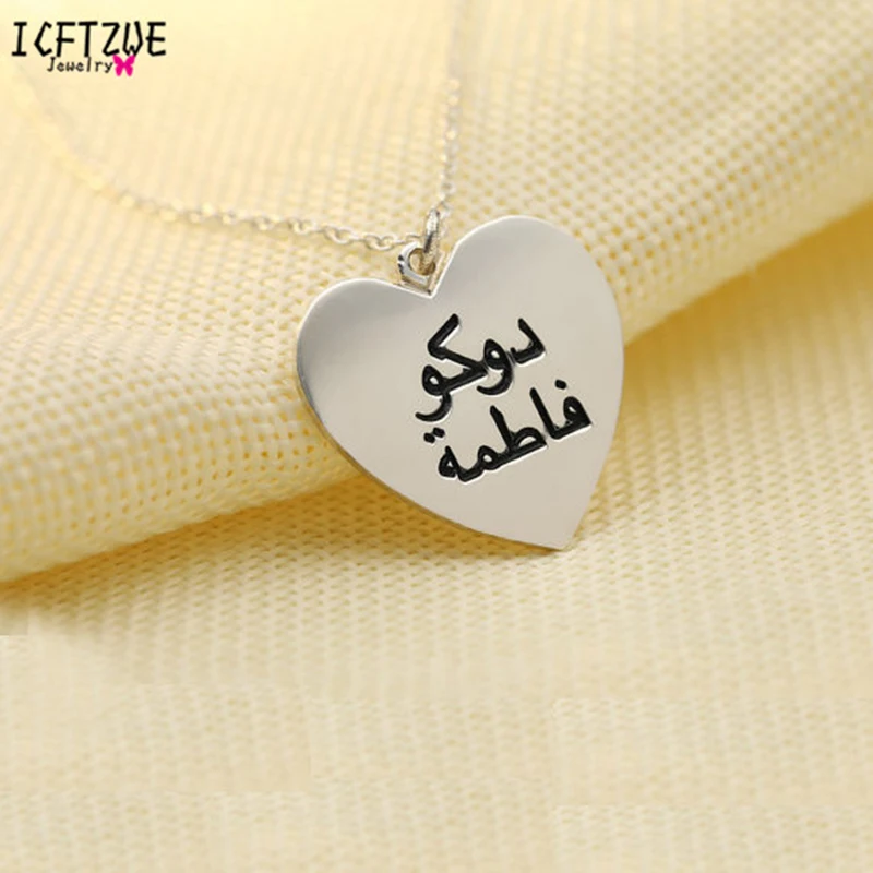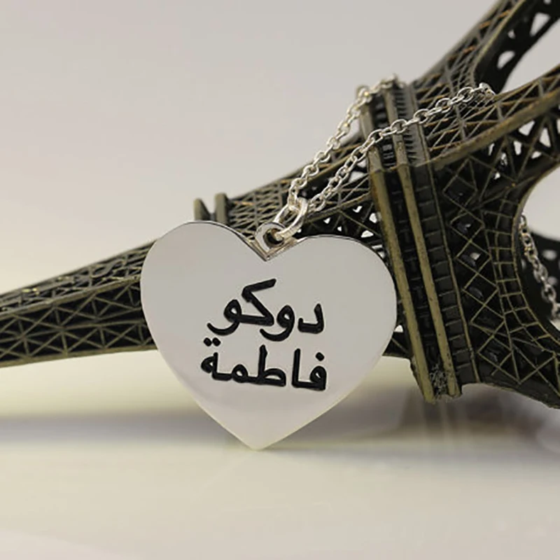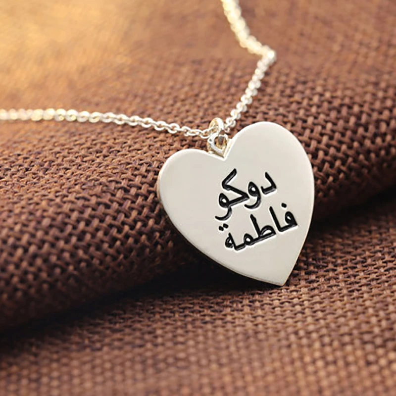 На заказ Гравировка два арабских имени ожерелье Арабский исламский мусульманский Шарм колье подвеска в форме сердца для женщин мужчин ювелирные изделия