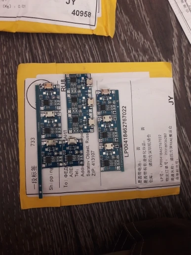Микросхема на фото TC4056A, на платах которые пришли ASC 4056, не соответствует описанию на сайте. Доставка очень долгая почти 100 дней. При заказе нескольких товаров, доставка оплачивается за каждый заказ, сумма заказа не влияет на скорость и стоимость доставки. Думал уже не придет, заказал у других продавцов, т.к. продавец отправляет самой эконом доставкой.