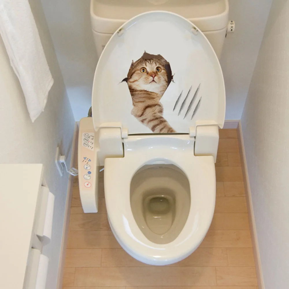Яркий 3D DIY кошка собака животное наклейка на унитаз s клейкая Семья Наклейка на стену s домашний холодильник стикер для ванной, туалета наклейка съемная